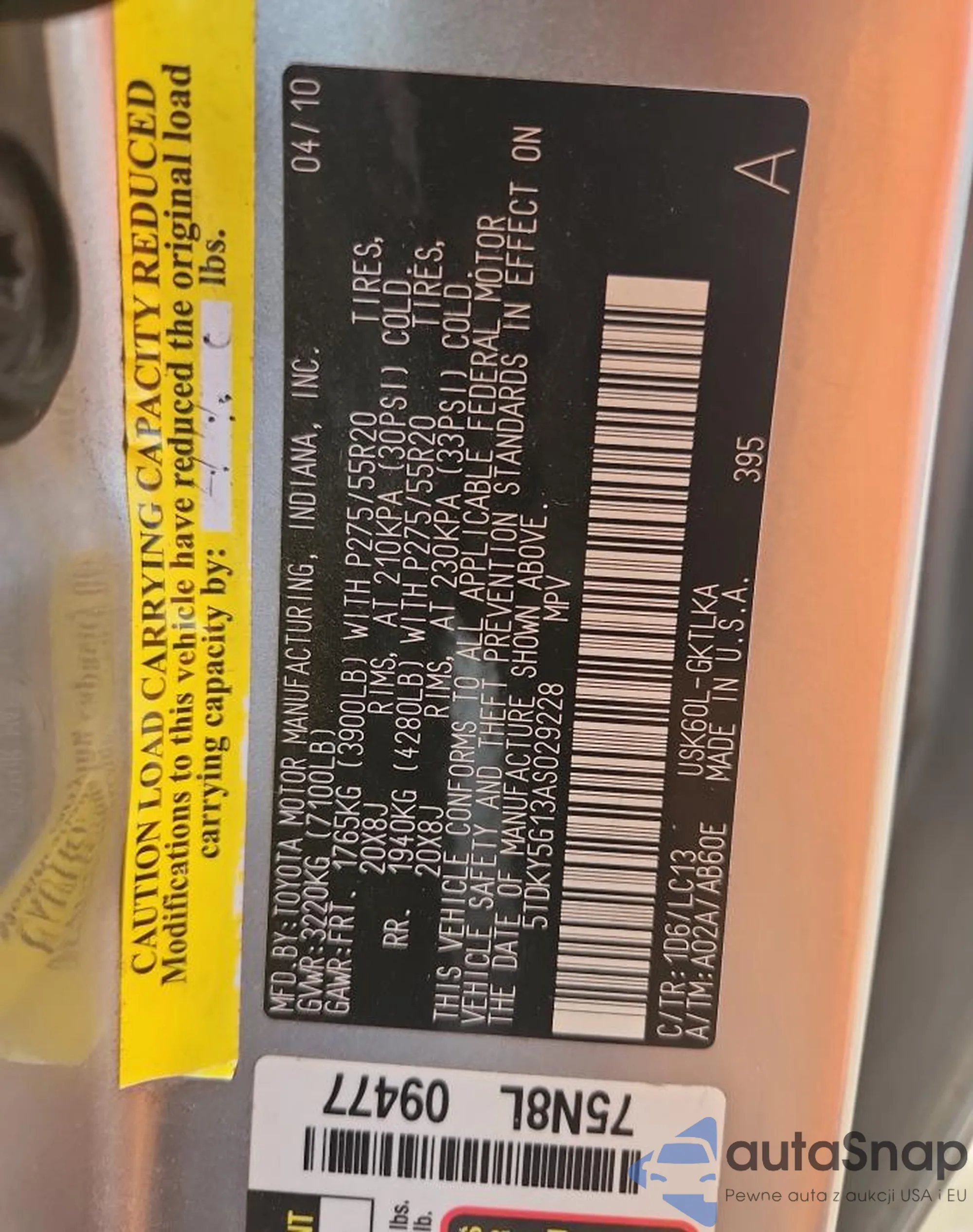 VIN: 5TDKY5G13AS029228
