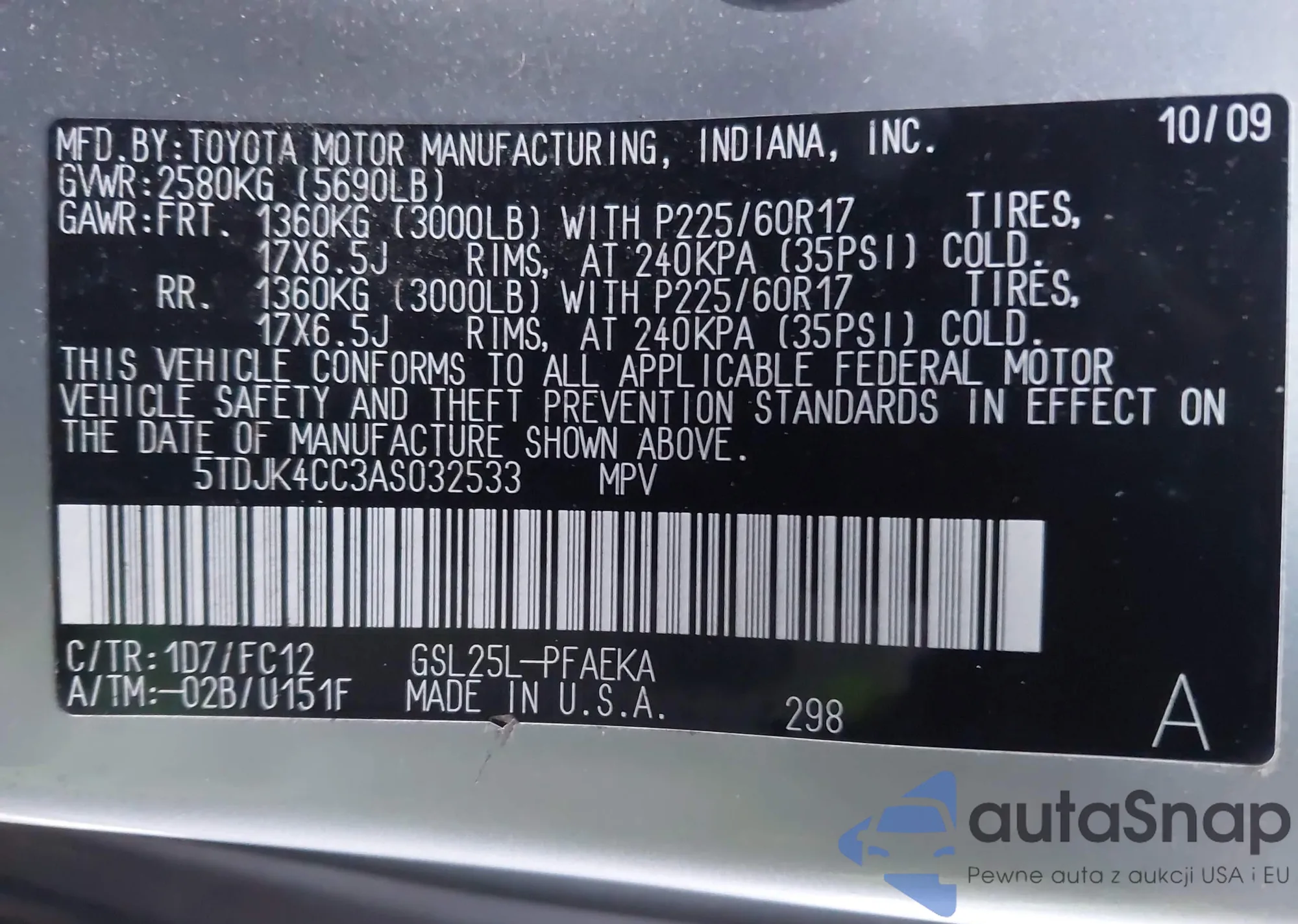 VIN: 5TDJK4CC3AS032533