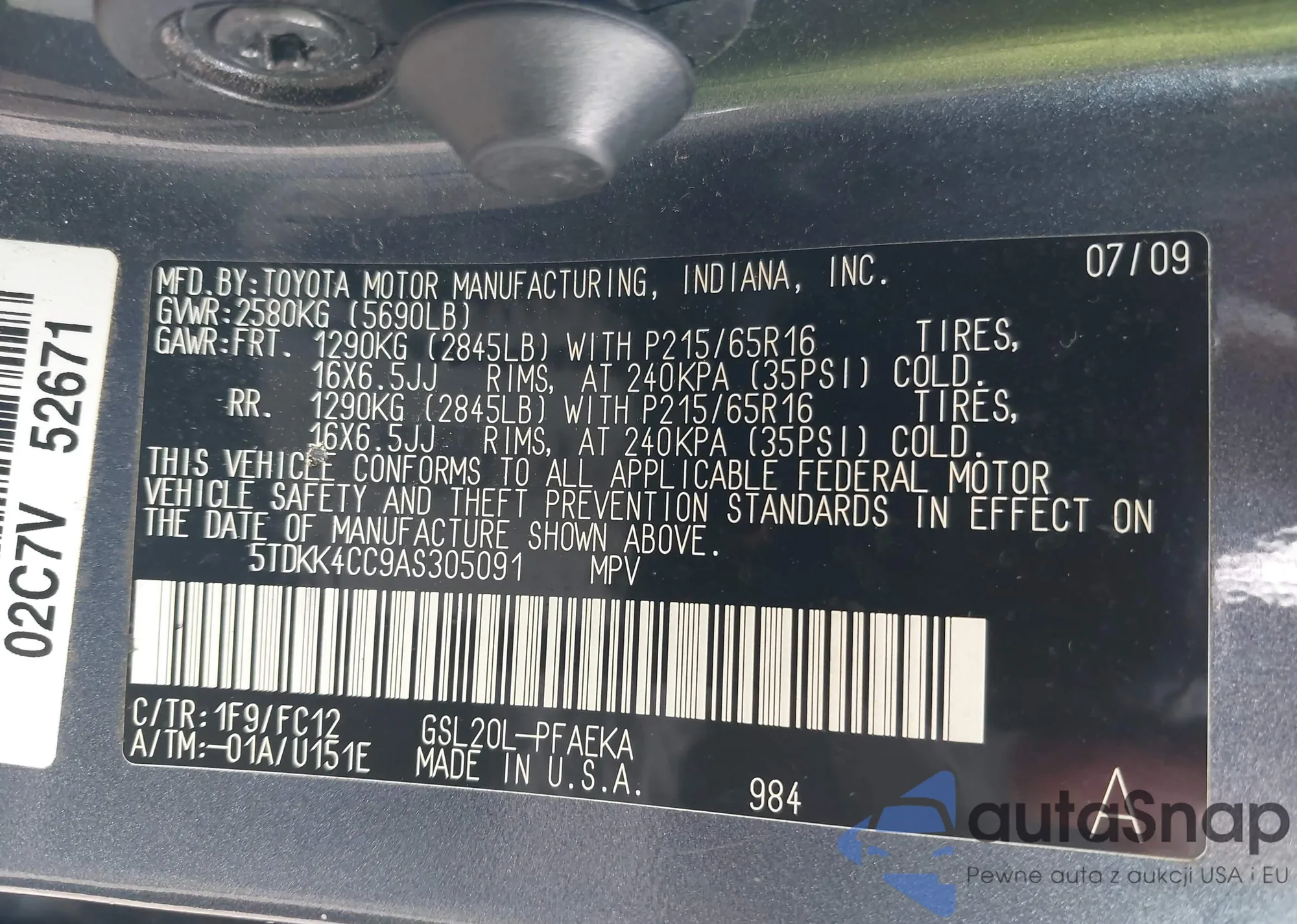 VIN: 5TDKK4CC9AS305091
