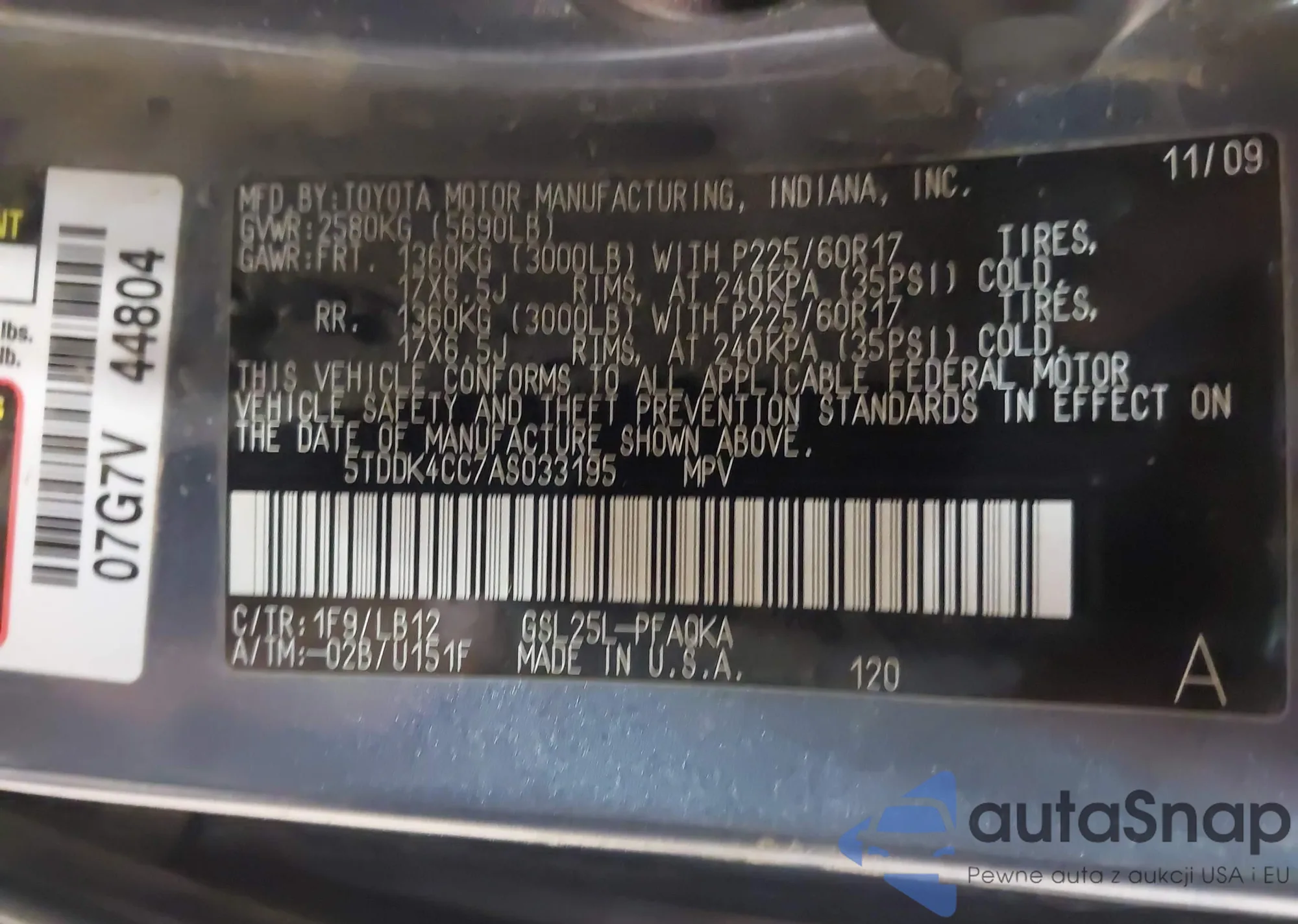 The car Toyota Sienna 2010 (VIN 5TDDK4CC7AS033195) has not been auctioned before. The documents are clean, and the mileage matches or is below the market average. Sold by an insurance company – we recommend purchase. Delivery to the port will take approx. 6–8 weeks.