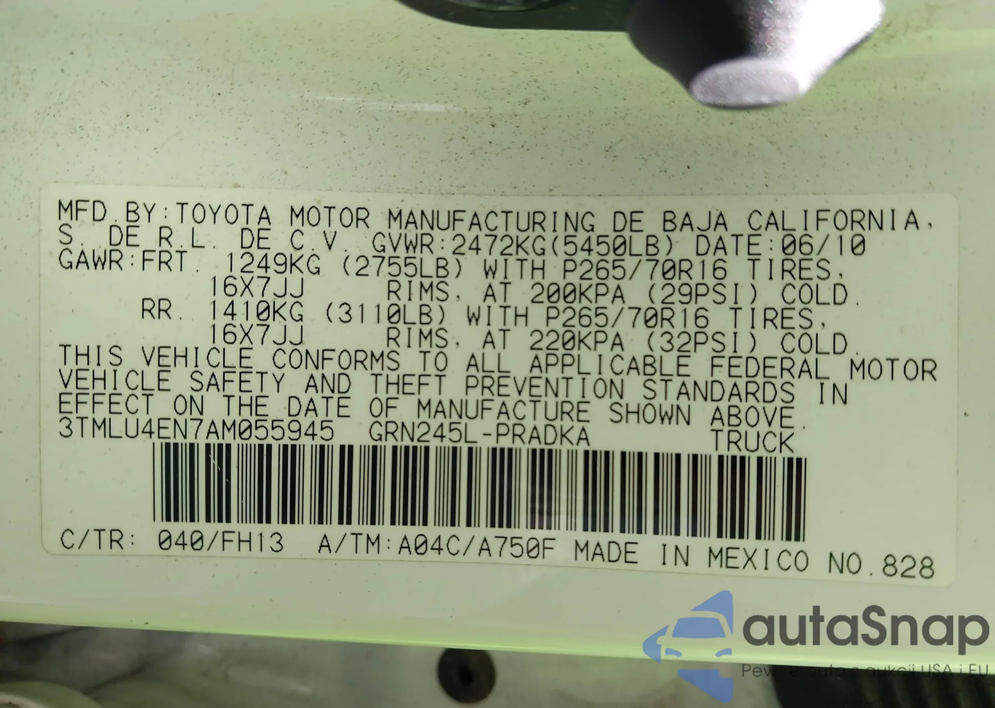 VIN: 3TMLU4EN7AM055945