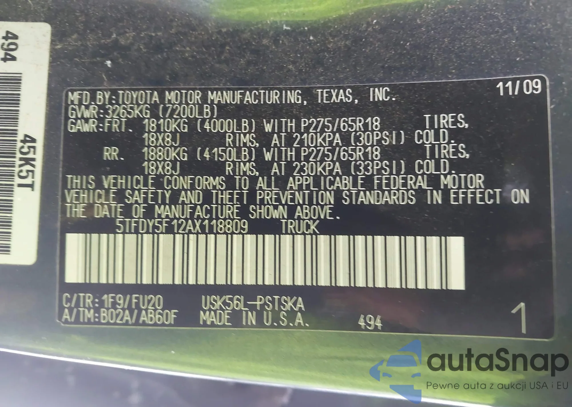 VIN: 5TFDY5F12AX118809