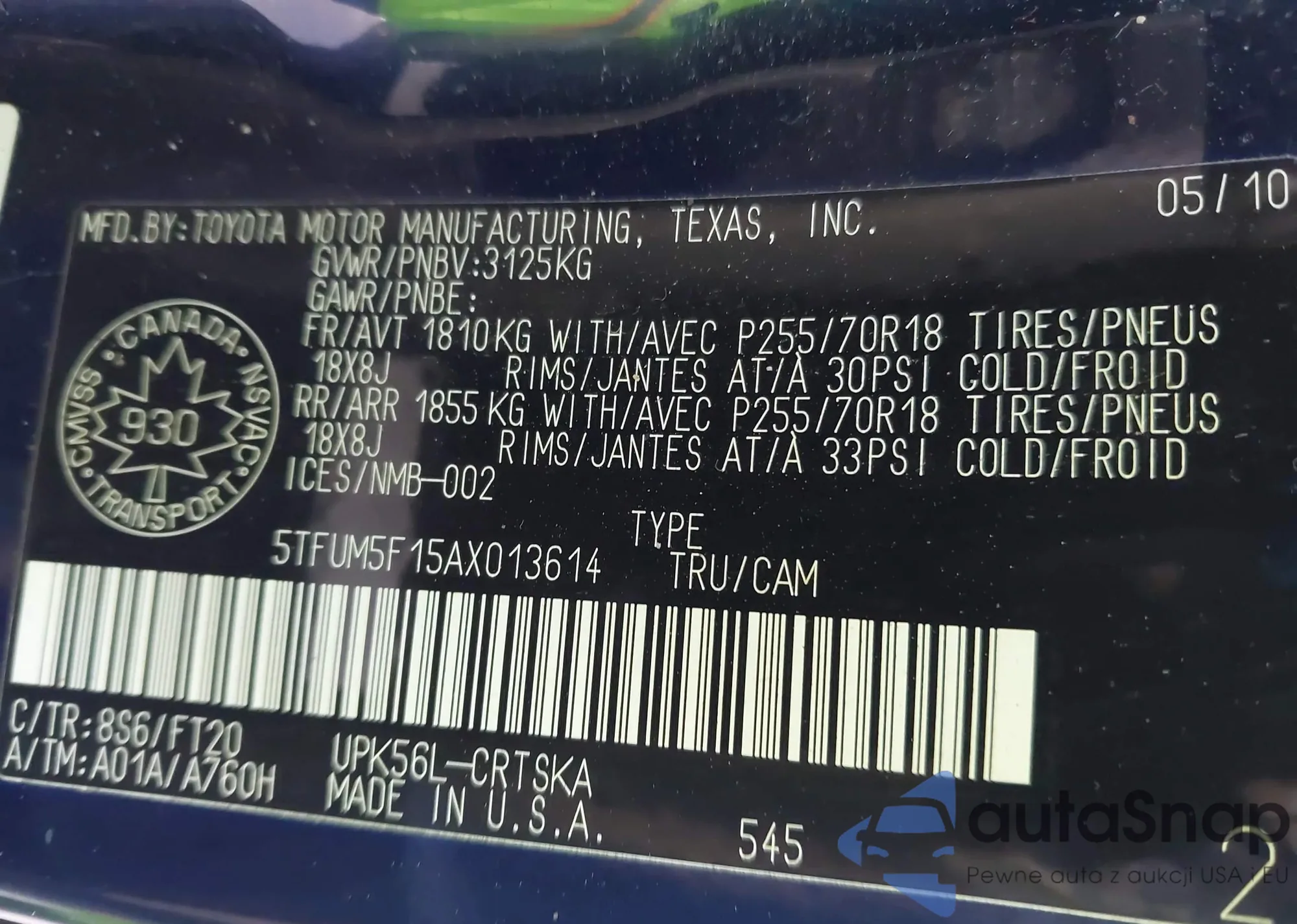 The car Toyota Tundra 2010 (VIN 5TFUM5F15AX013614) has already been auctioned 1 times and/or is sold by an unverified seller. We recommend checking the Carfax report and confirming registration possibilities before purchase.