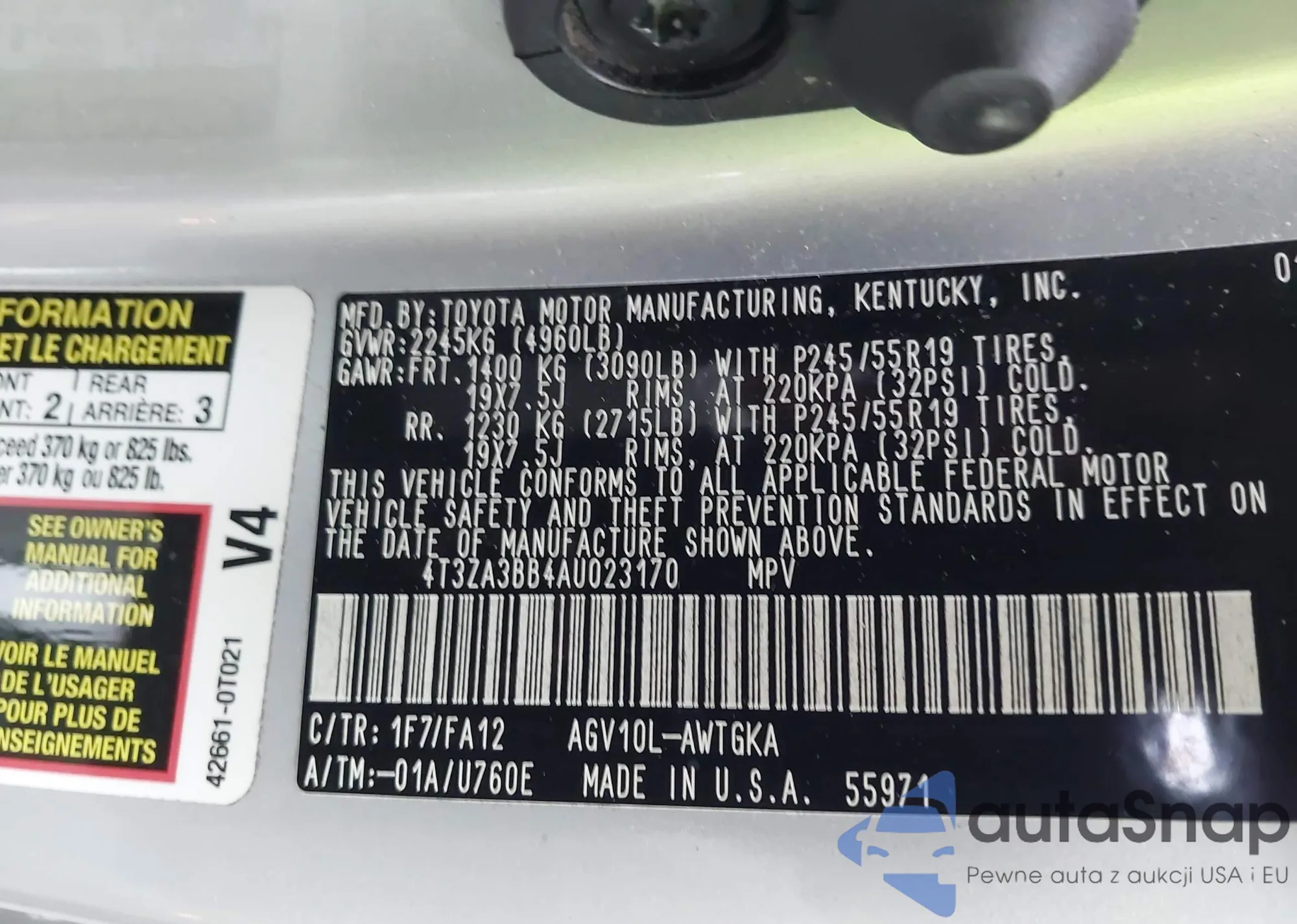 VIN: 4T3ZA3BB4AU023170