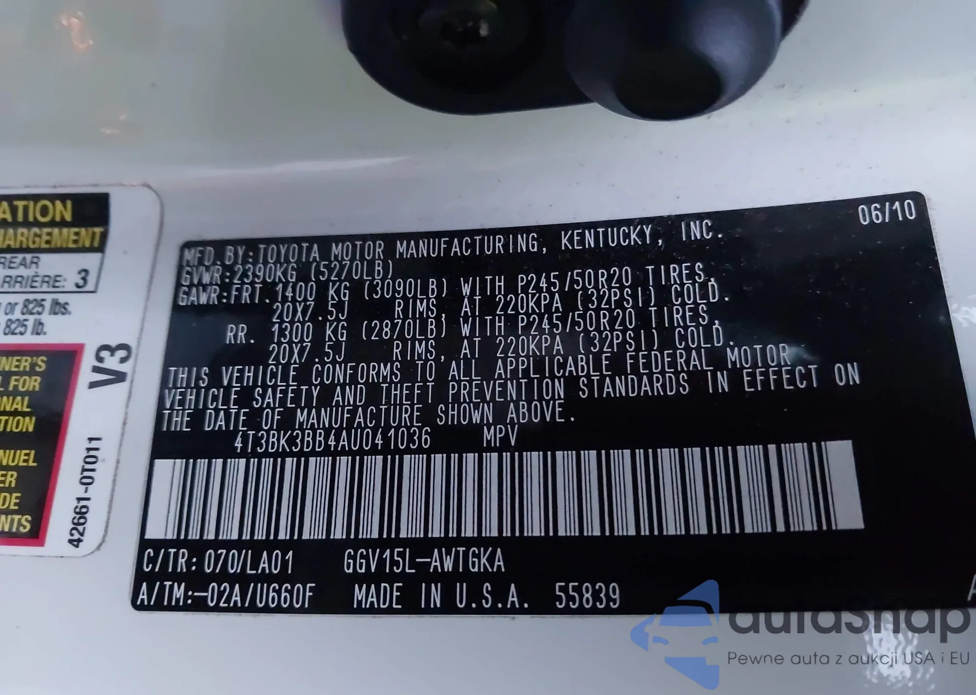 VIN: 4T3BK3BB4AU041036