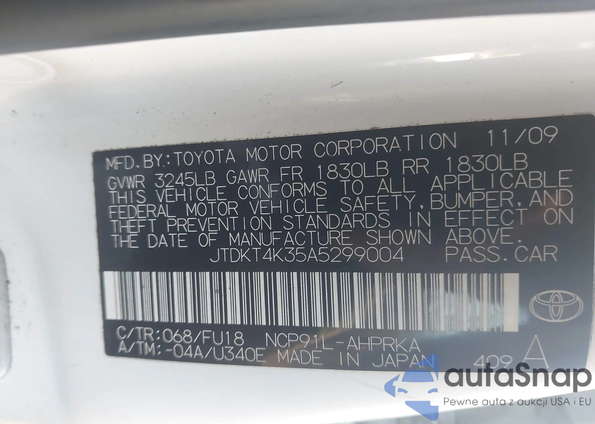 The car Toyota Yaris 2010 (VIN JTDKT4K35A5299004) is sold by an unverified seller. We recommend checking the Carfax report and confirming registration possibilities before purchase.