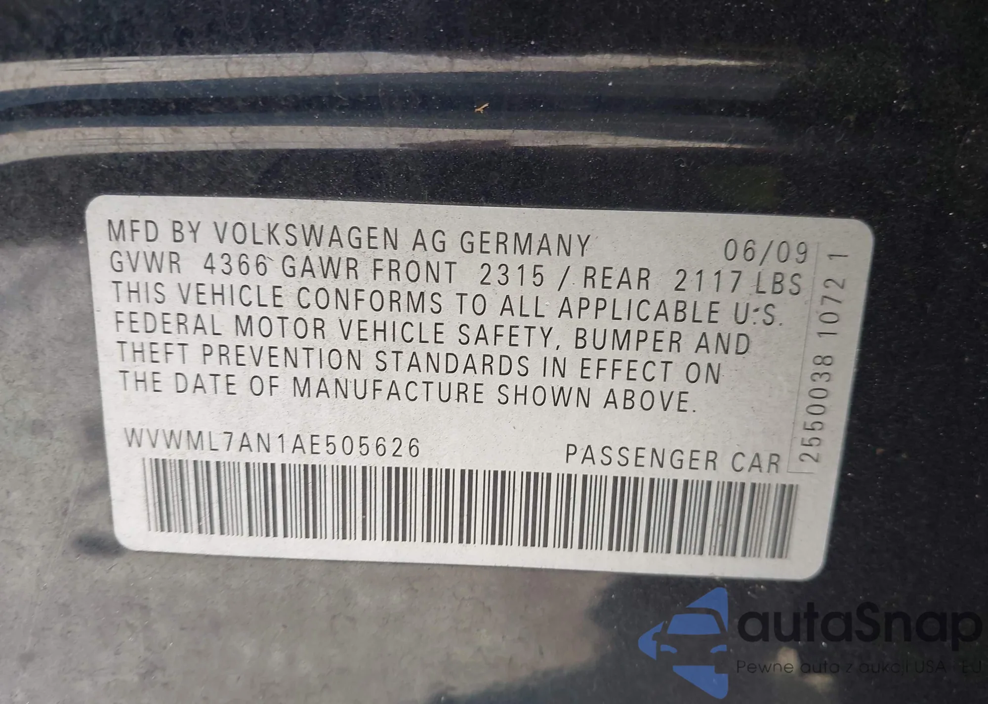 VIN: WVWML7AN1AE505626