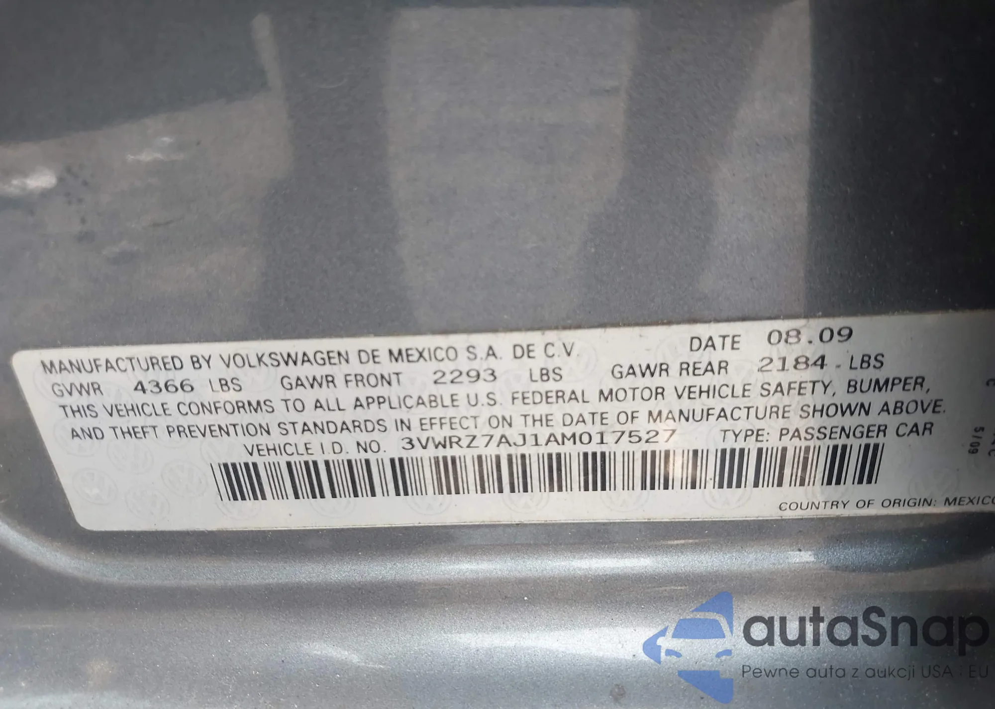 VIN: 3VWRZ7AJ1AM017527