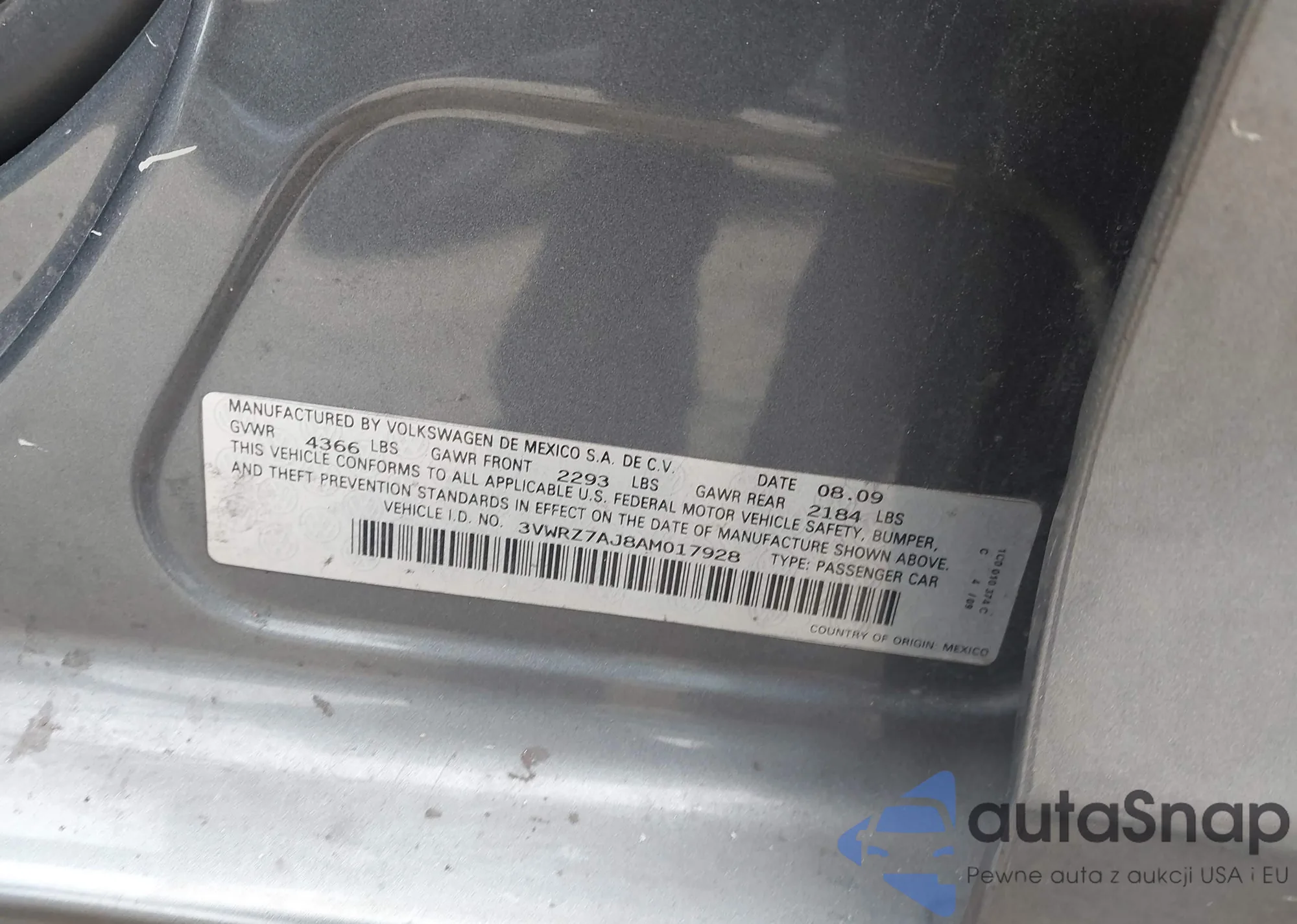 VIN: 3VWRZ7AJ8AM017928