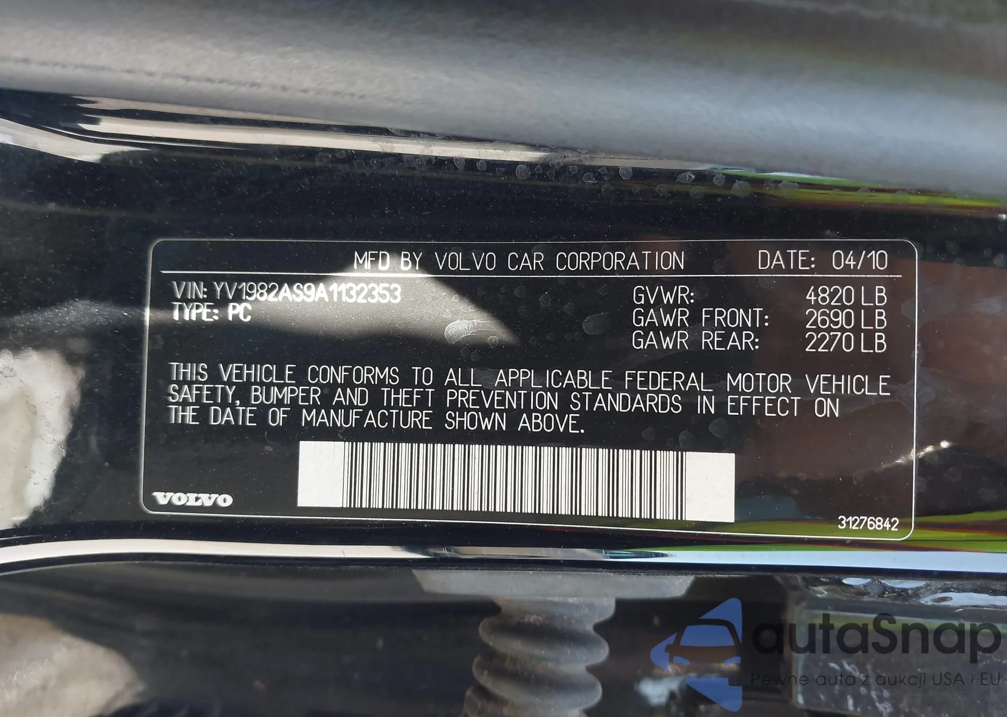• VIN: YV1982AS9A1132353
