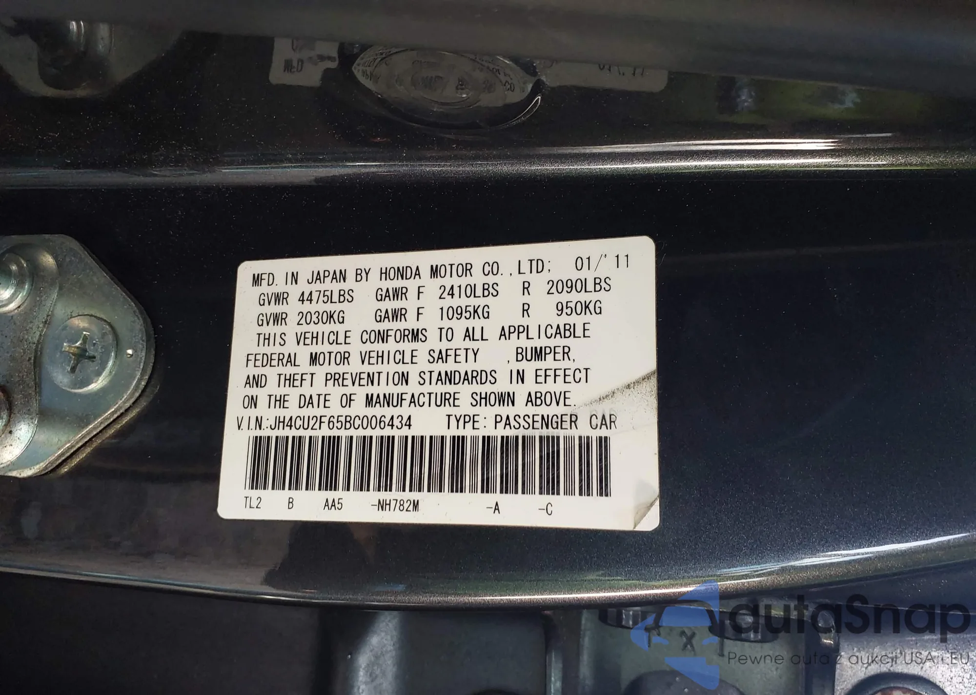 The car Acura TSX 2011 (VIN JH4CU2F65BC006434) has not been auctioned before. The documents are clean, and the mileage matches or is below the market average. Sold by an insurance company – we recommend purchase. Delivery to the port will take approx. 6–8 weeks.