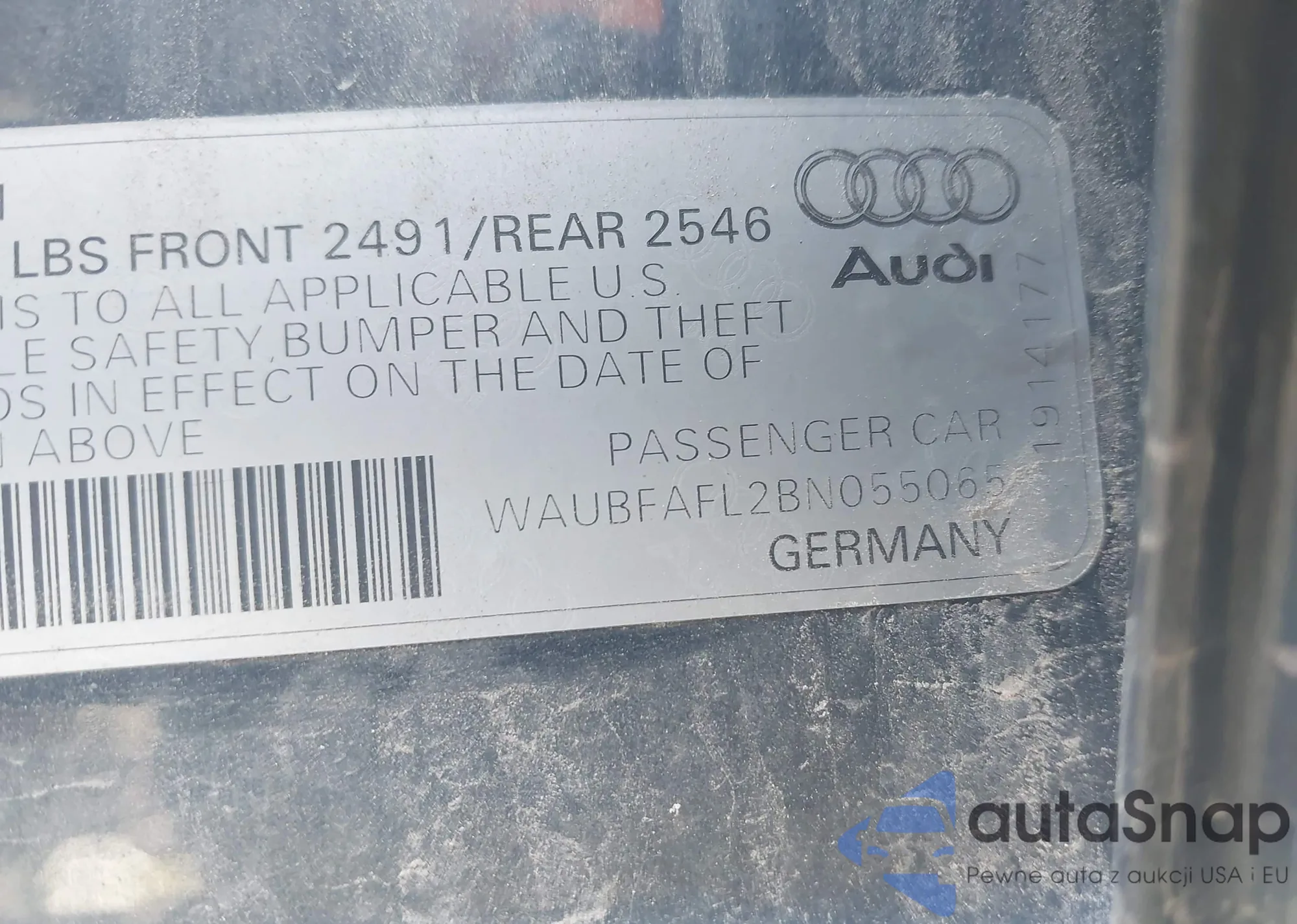 VIN: WAUBFAFL2BN055065