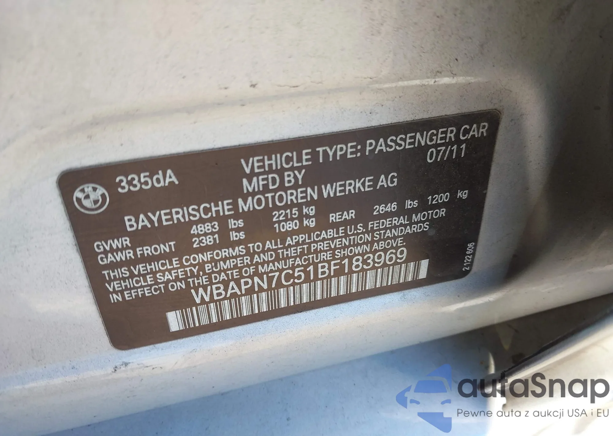 VIN: WBAPN7C51BF183969