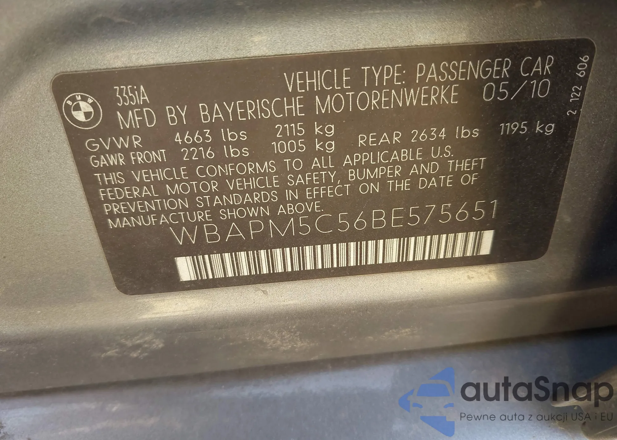 VIN: WBAPM5C56BE575651