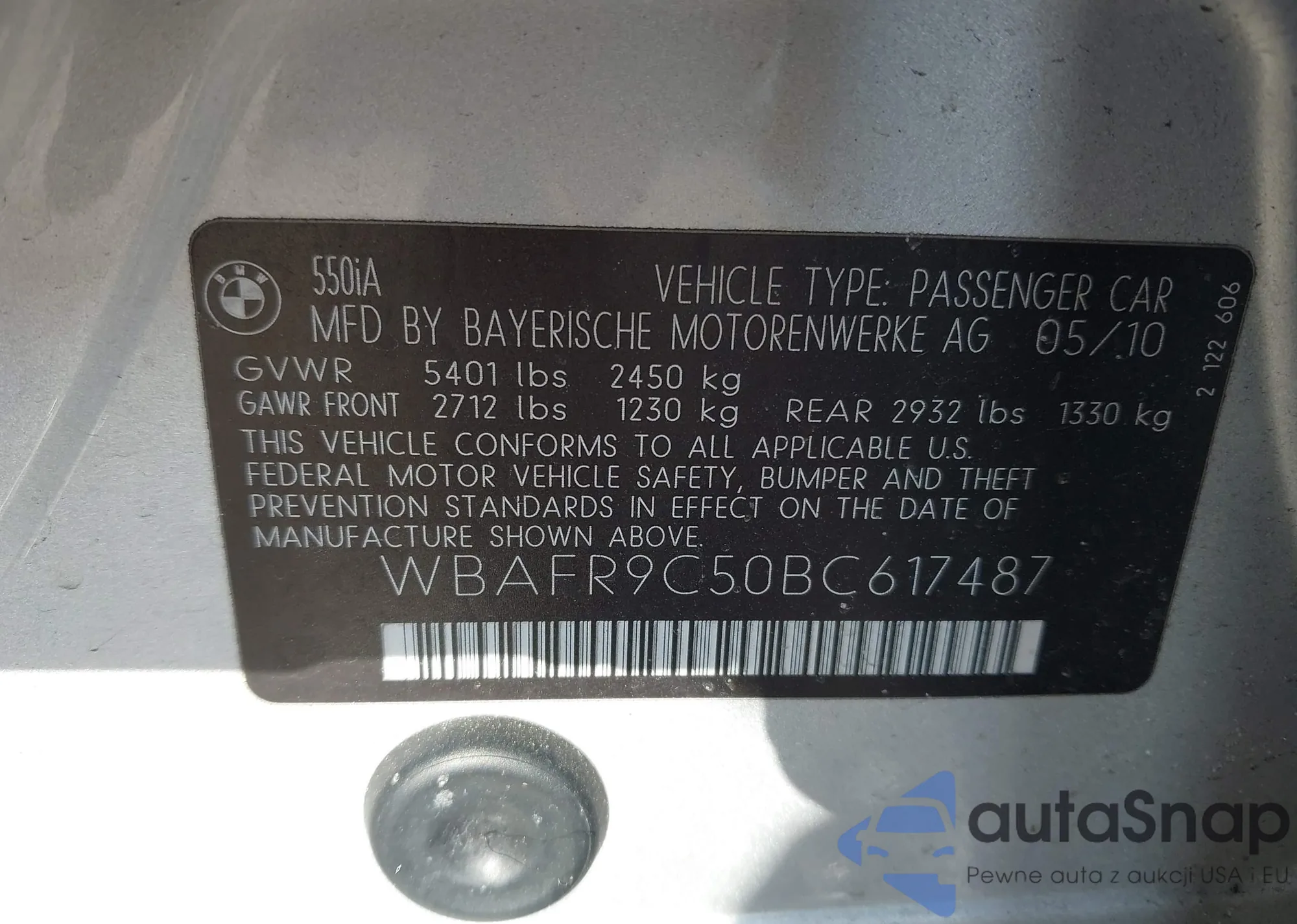 The car BMW 5er 2011 (VIN WBAFR9C50BC617487) has not been auctioned before. The documents are clean, and the mileage matches or is below the market average. Sold by an insurance company – we recommend purchase. Delivery to the port will take approx. 6–8 weeks.