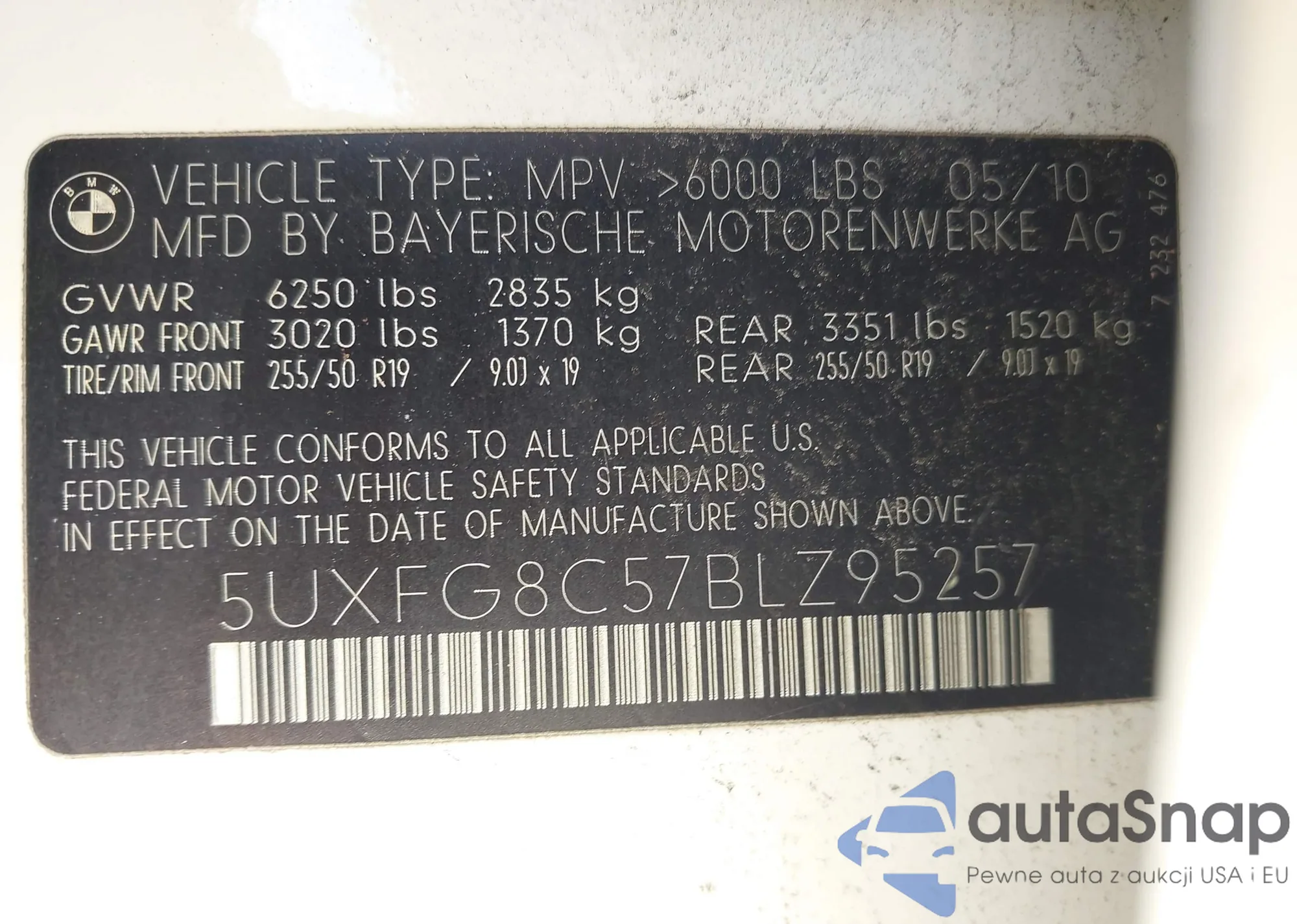 The car BMW X6 2011 (VIN 5UXFG8C57BLZ95257) is sold by an unverified seller. We recommend checking the Carfax report and confirming registration possibilities before purchase.