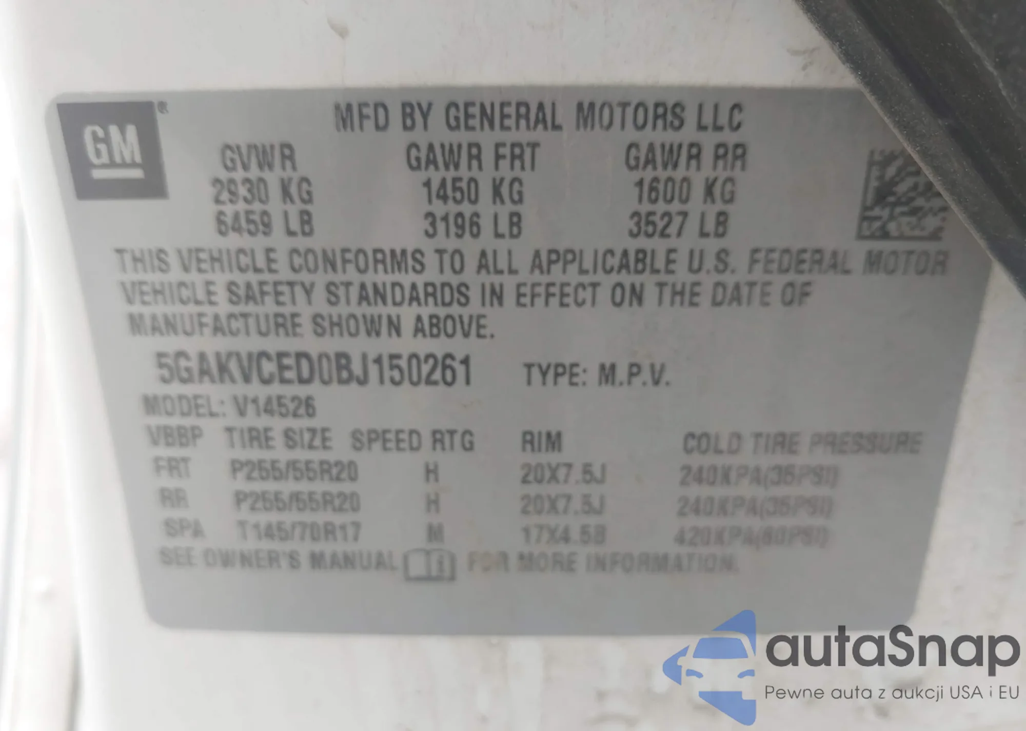 VIN: 5GAKVCED0BJ150261