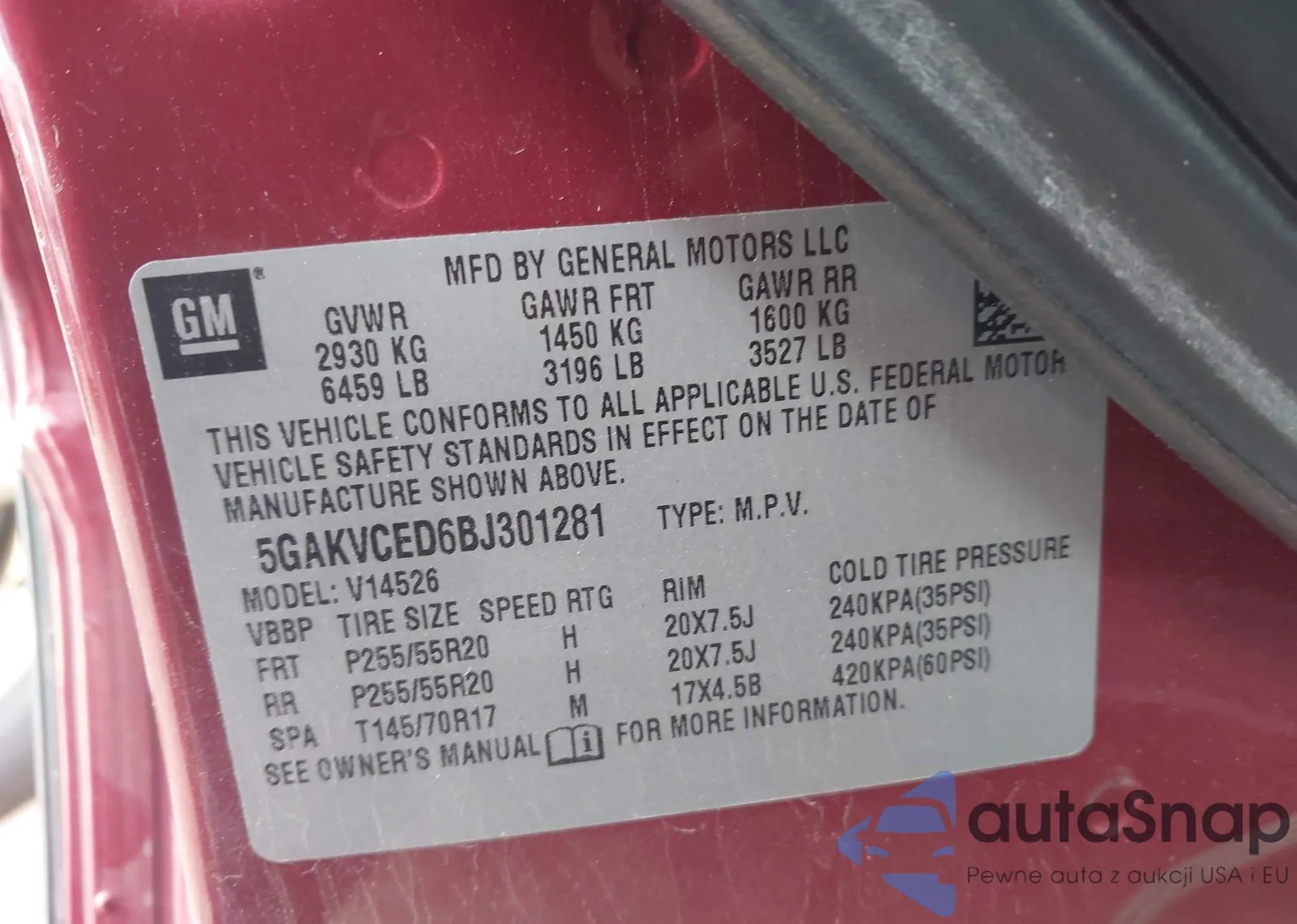 VIN: 5GAKVCED6BJ301281