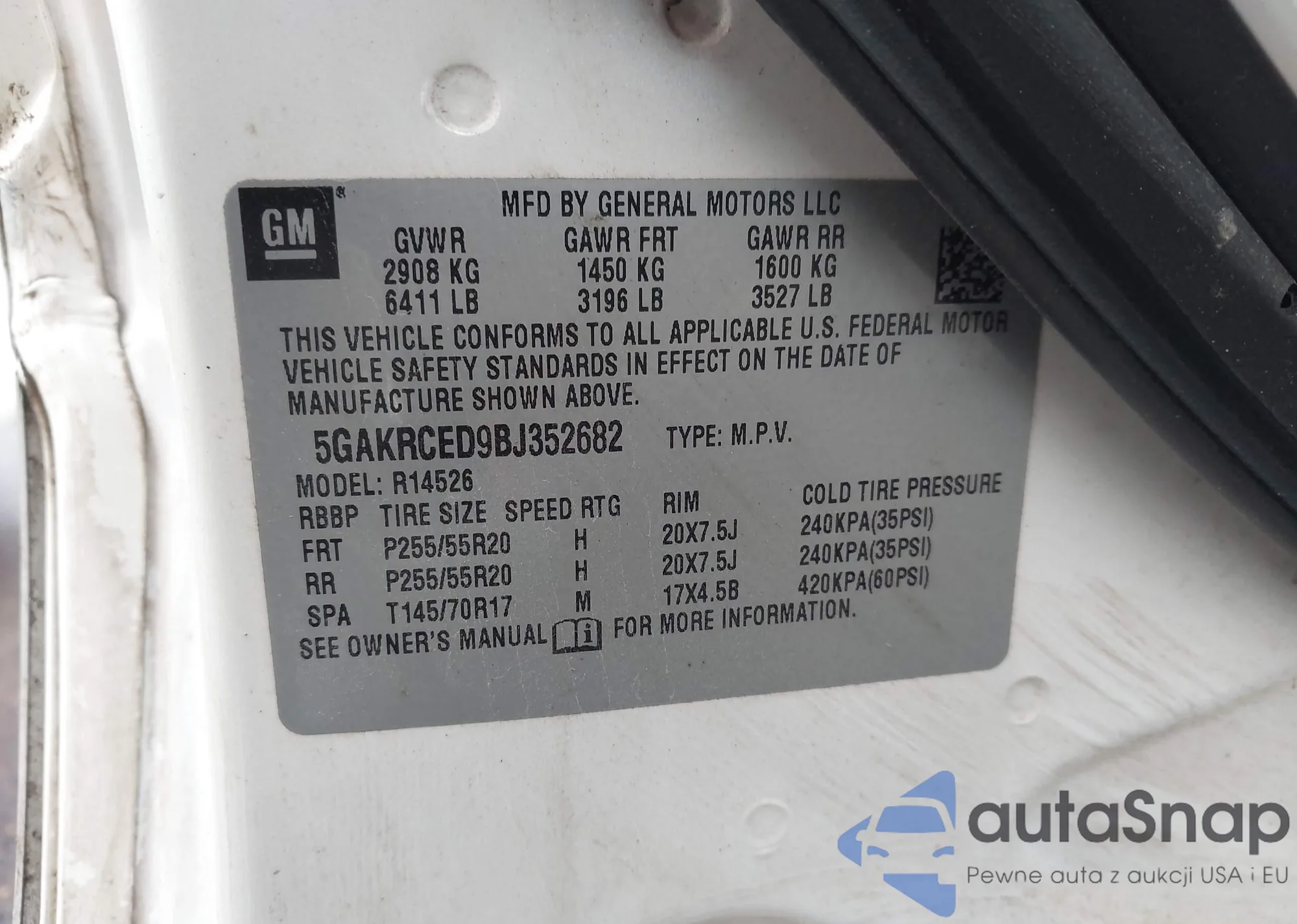 The car Buick Enclave 2011 (VIN 5GAKRCED9BJ352682) has not been auctioned before. The documents are clean, and the mileage matches or is below the market average. Sold by an insurance company – we recommend purchase. Delivery to the port will take approx. 6–8 weeks.