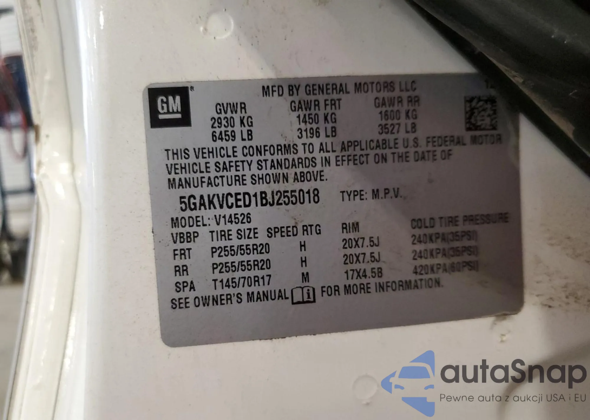 • VIN: 5GAKVCED1BJ255018