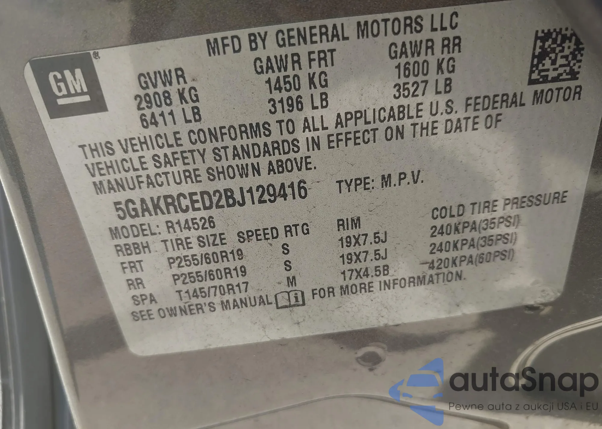 VIN: 5GAKRCED2BJ129416