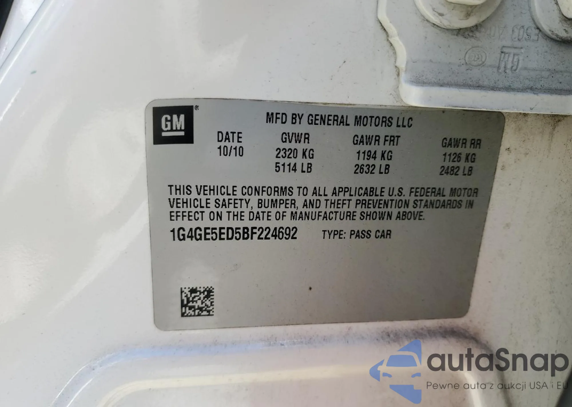 The car Buick LaCrosse 2011 (VIN 1G4GE5ED5BF224692) is sold by an unverified seller. We recommend checking the Carfax report and confirming registration possibilities before purchase.