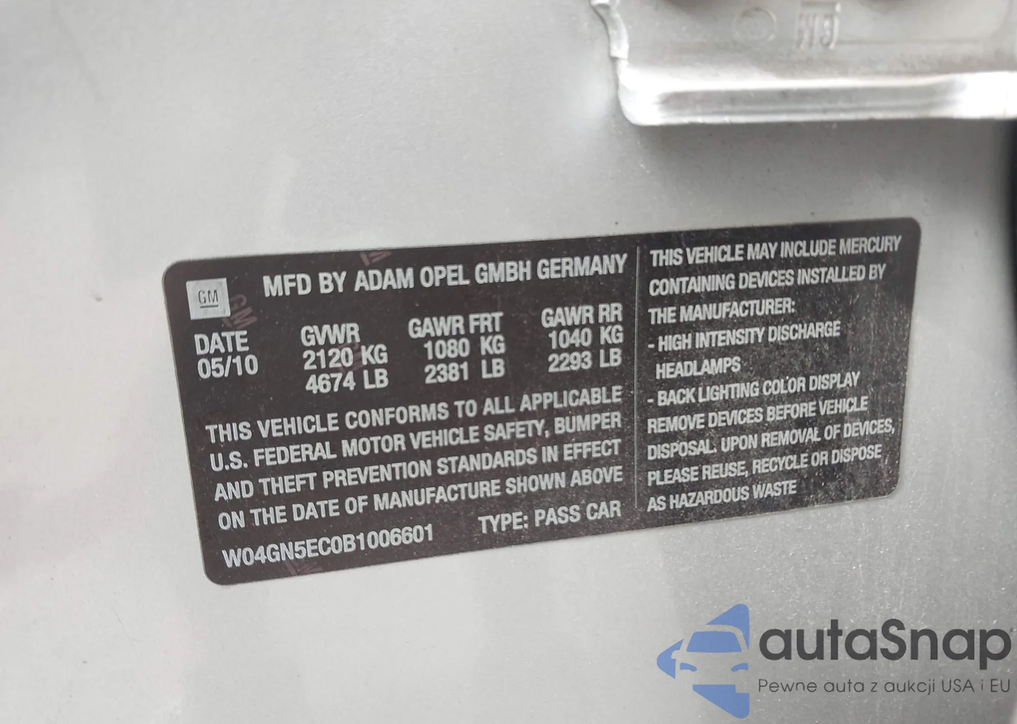 VIN: W04GN5EC0B1006601