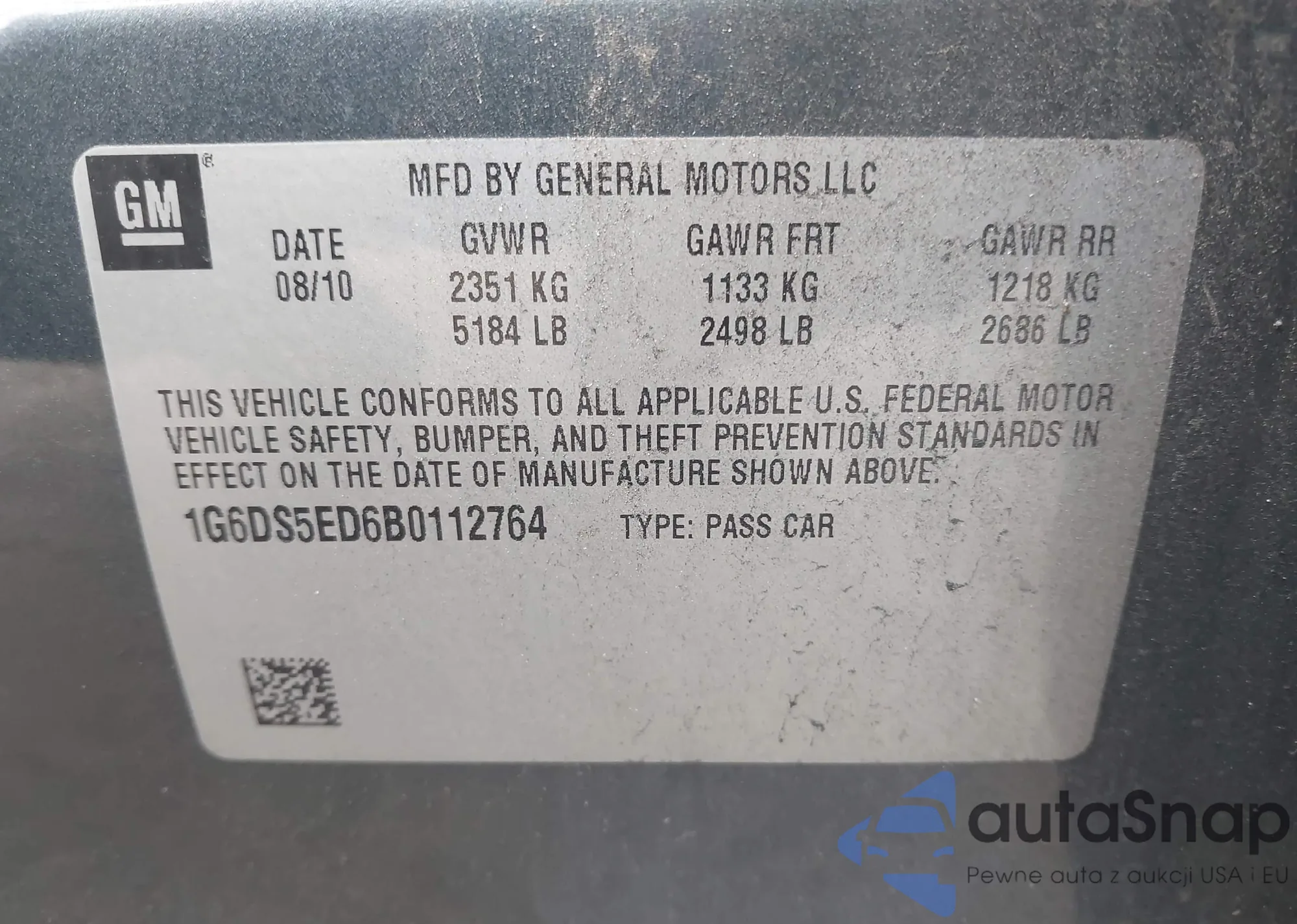 VIN: 1G6DS5ED6B0112764