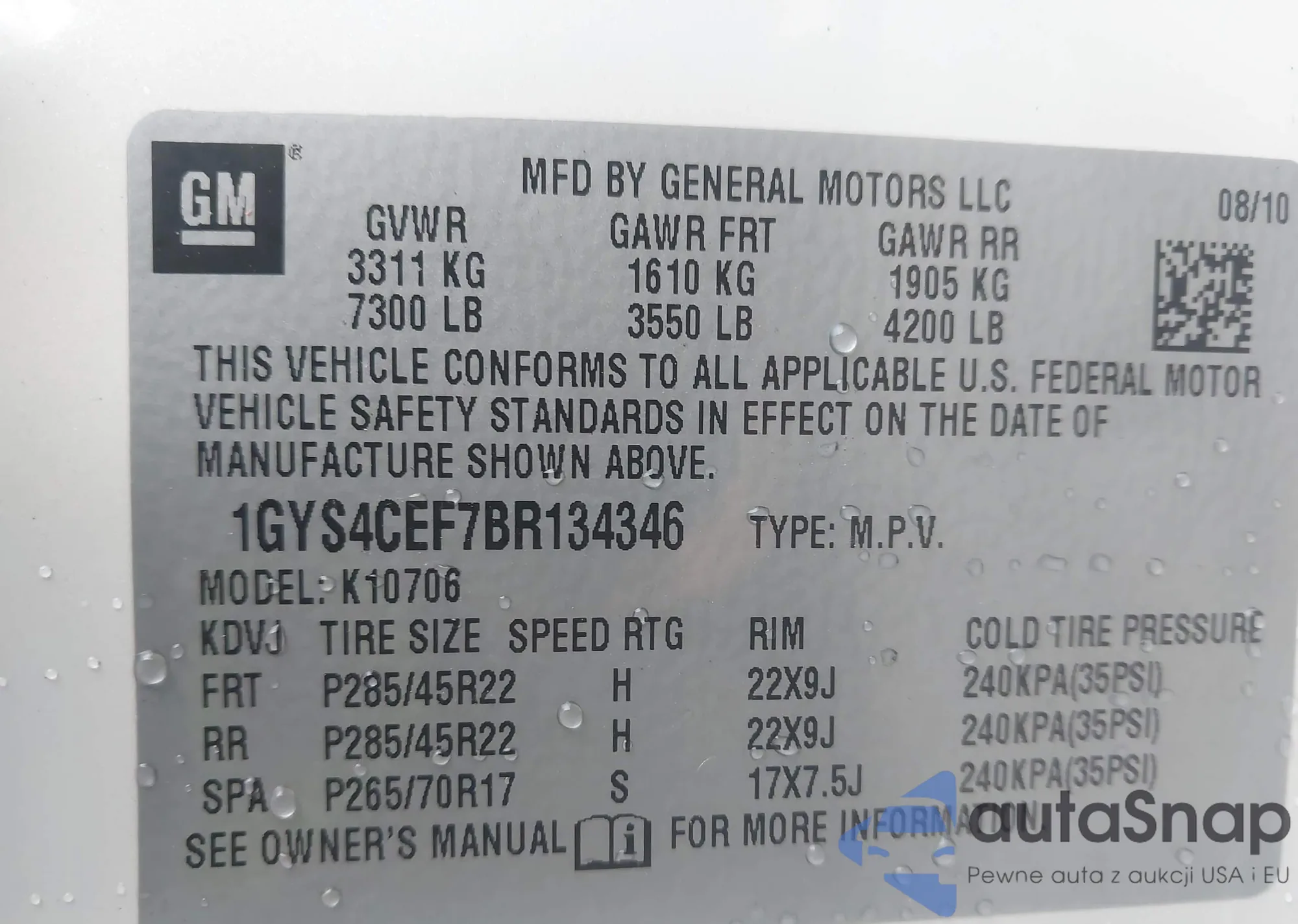 VIN: 1GYS4CEF7BR134346