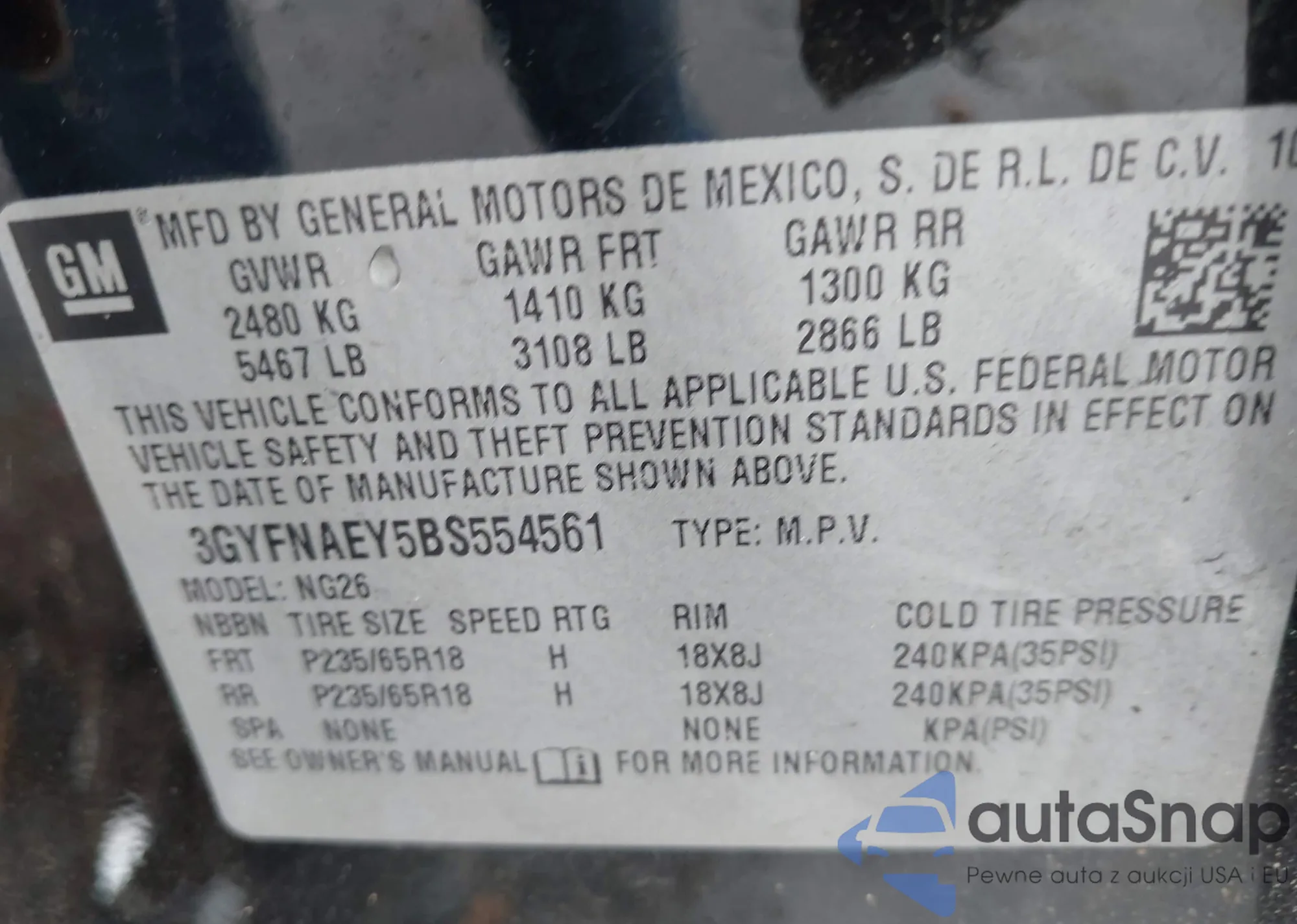The car Cadillac SRX 2011 (VIN 3GYFNAEY5BS554561) has not been auctioned before. The documents are clean, and the mileage matches or is below the market average. Sold by an insurance company – we recommend purchase. Delivery to the port will take approx. 6–8 weeks.