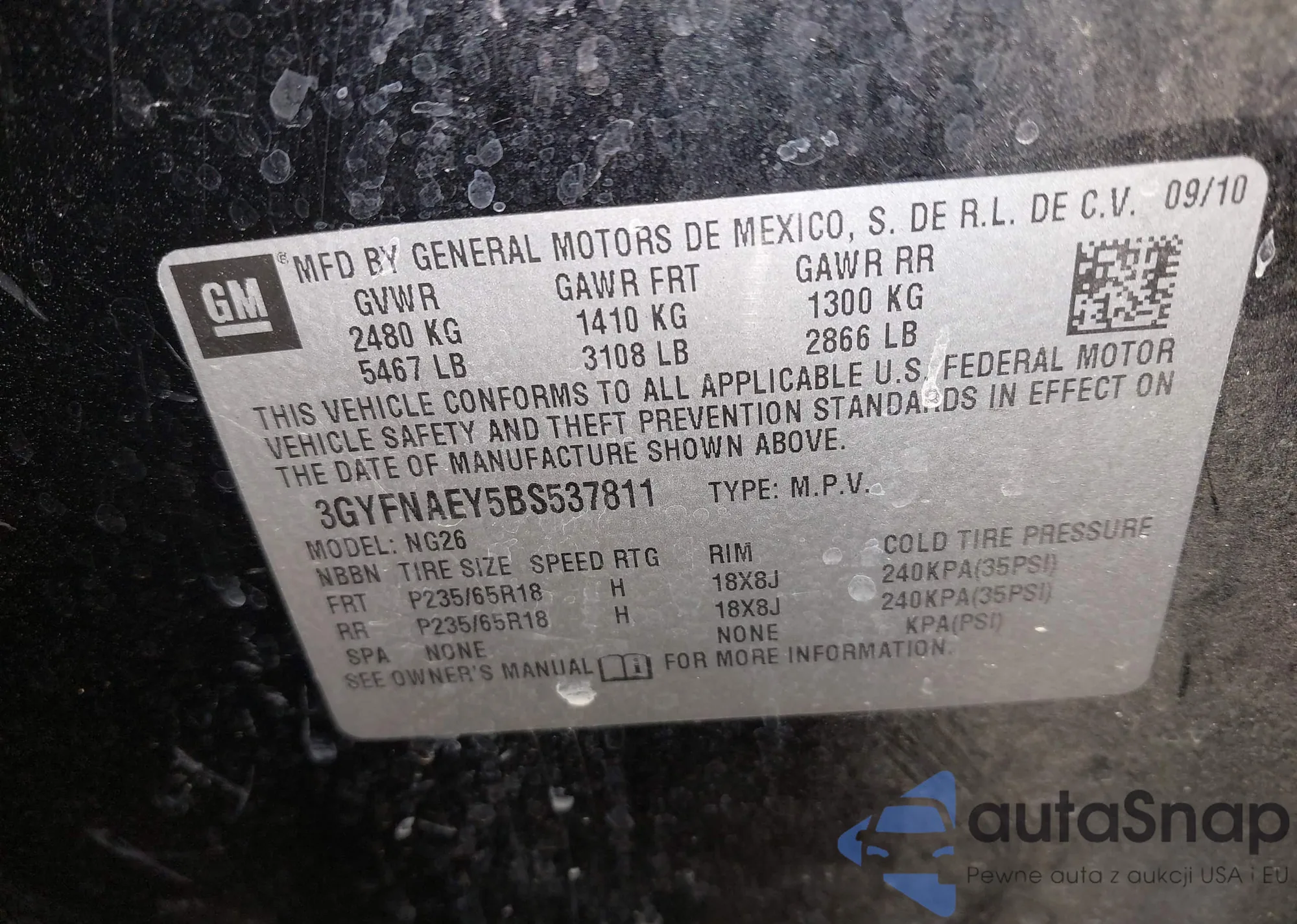 VIN: 3GYFNAEY5BS537811