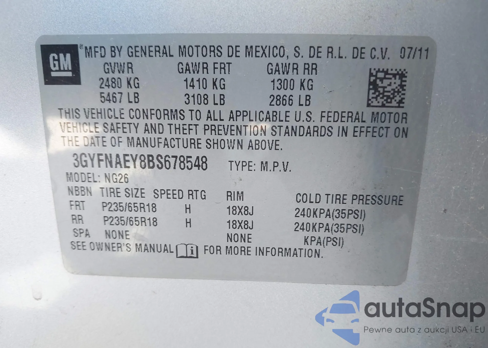 • VIN: 3GYFNAEY8BS678548