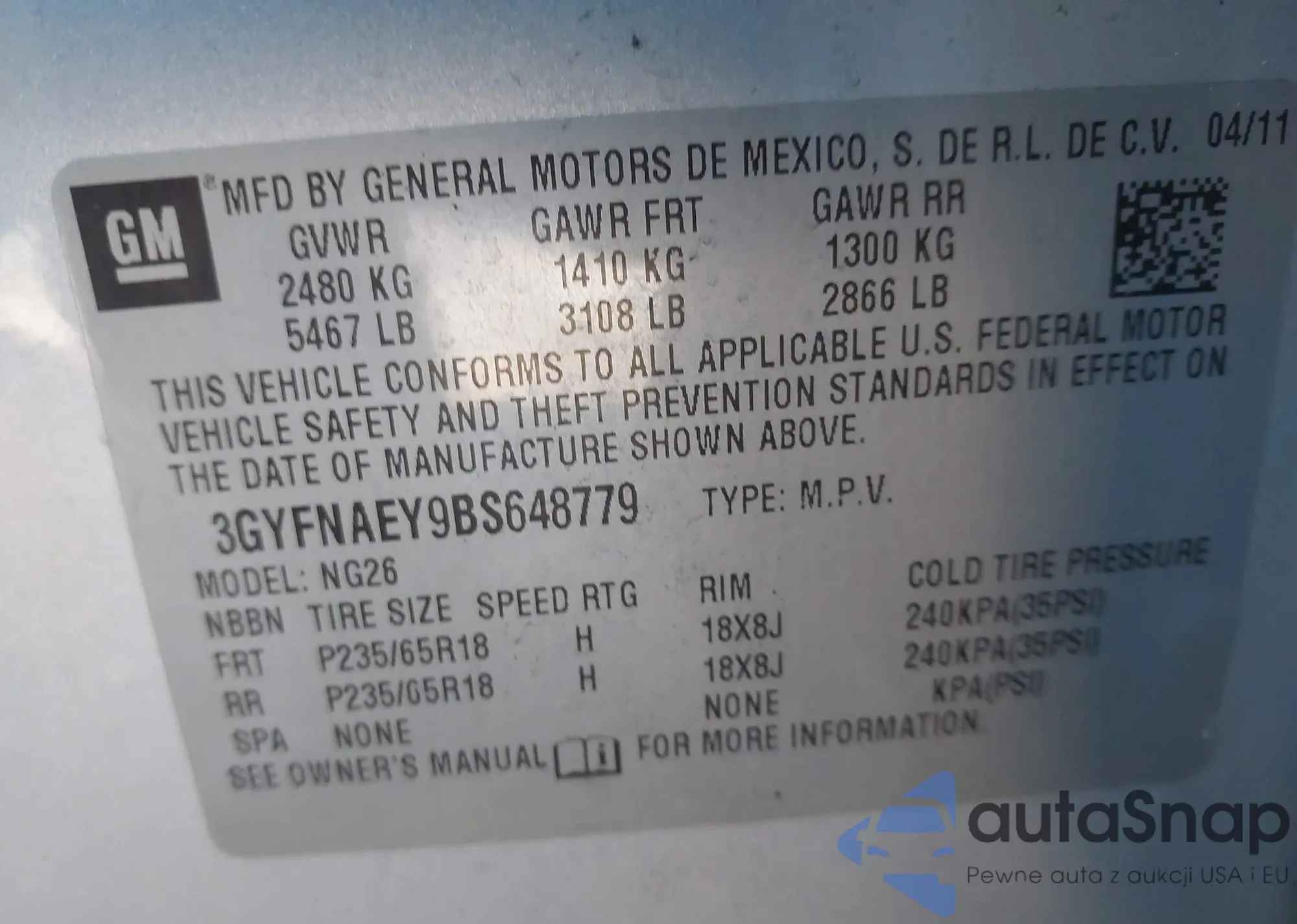 VIN: 3GYFNAEY9BS648779