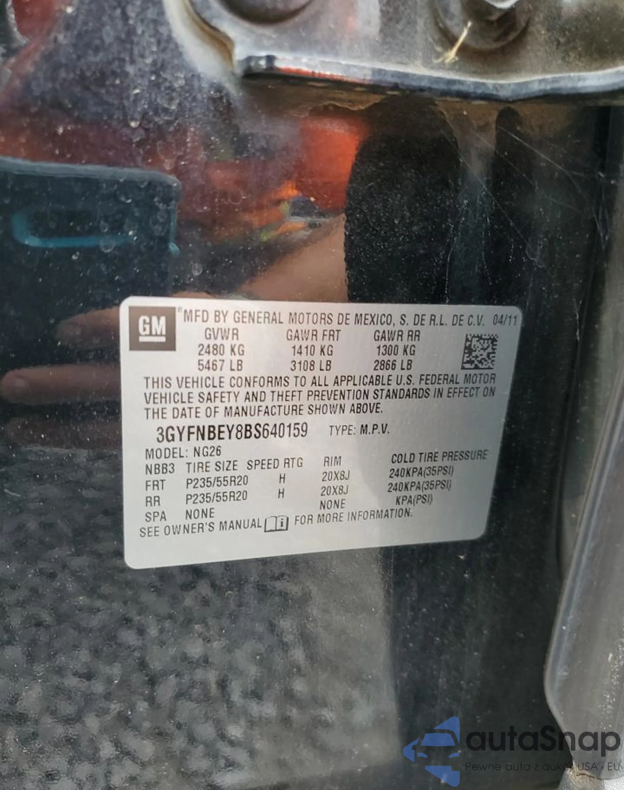 VIN: 3GYFNBEY8BS640159