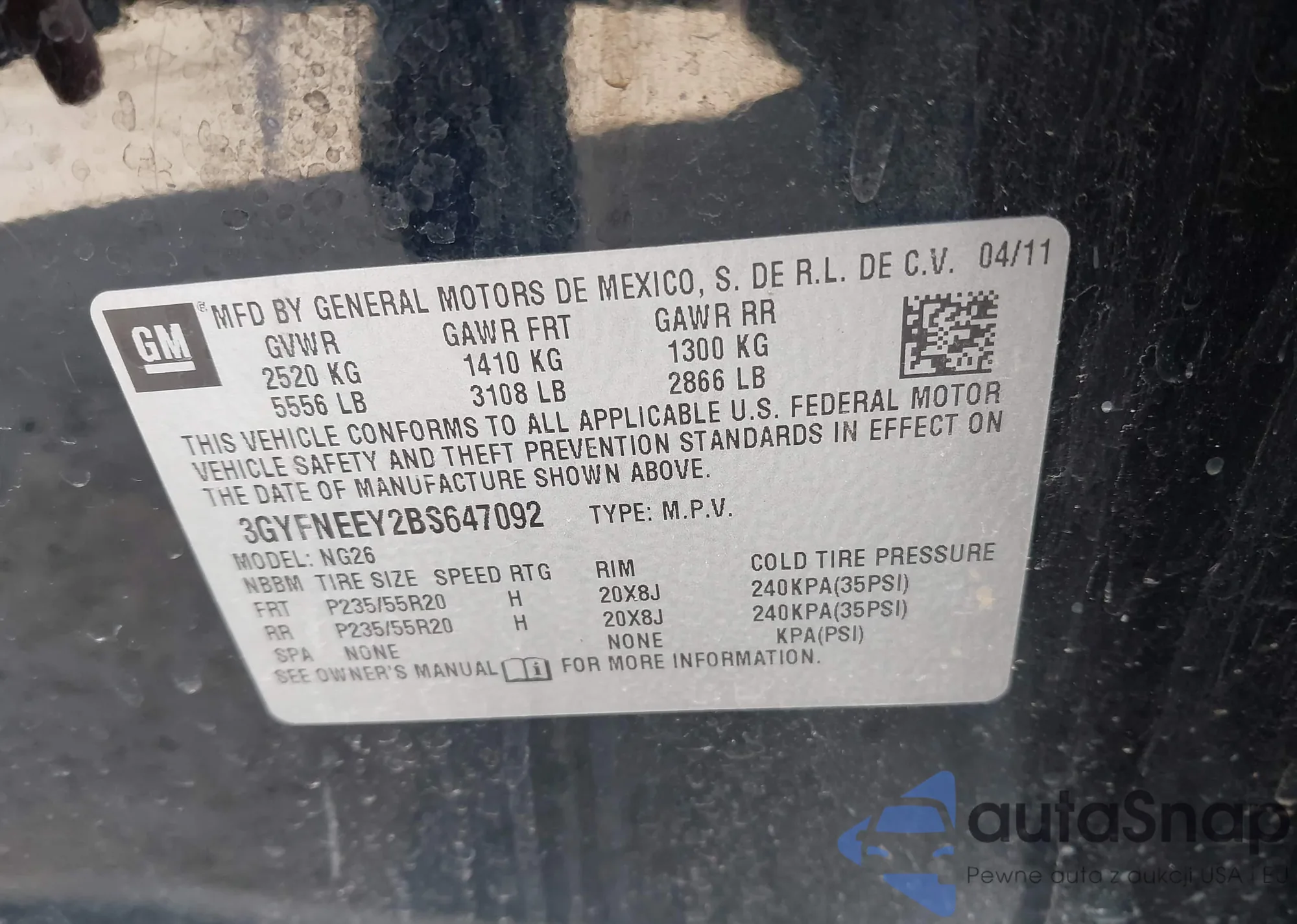 • VIN: 3GYFNEEY2BS647092