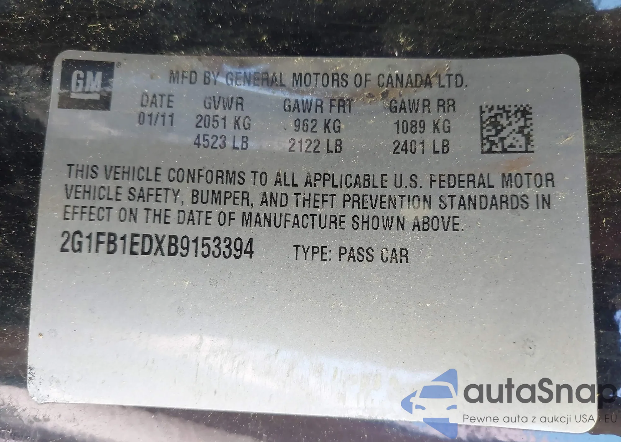 VIN: 2G1FB1EDXB9153394