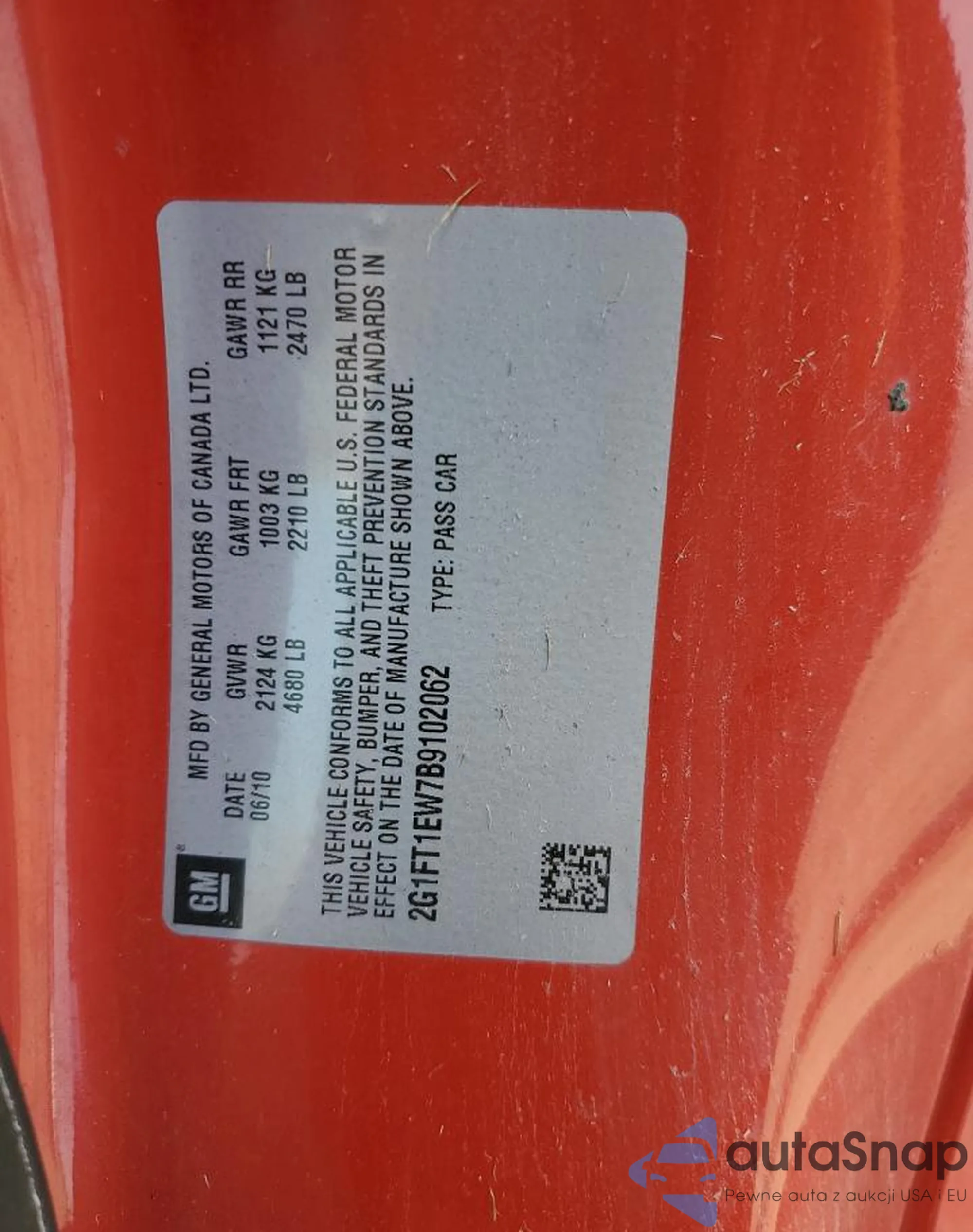 VIN: 2G1FT1EW7B9102062