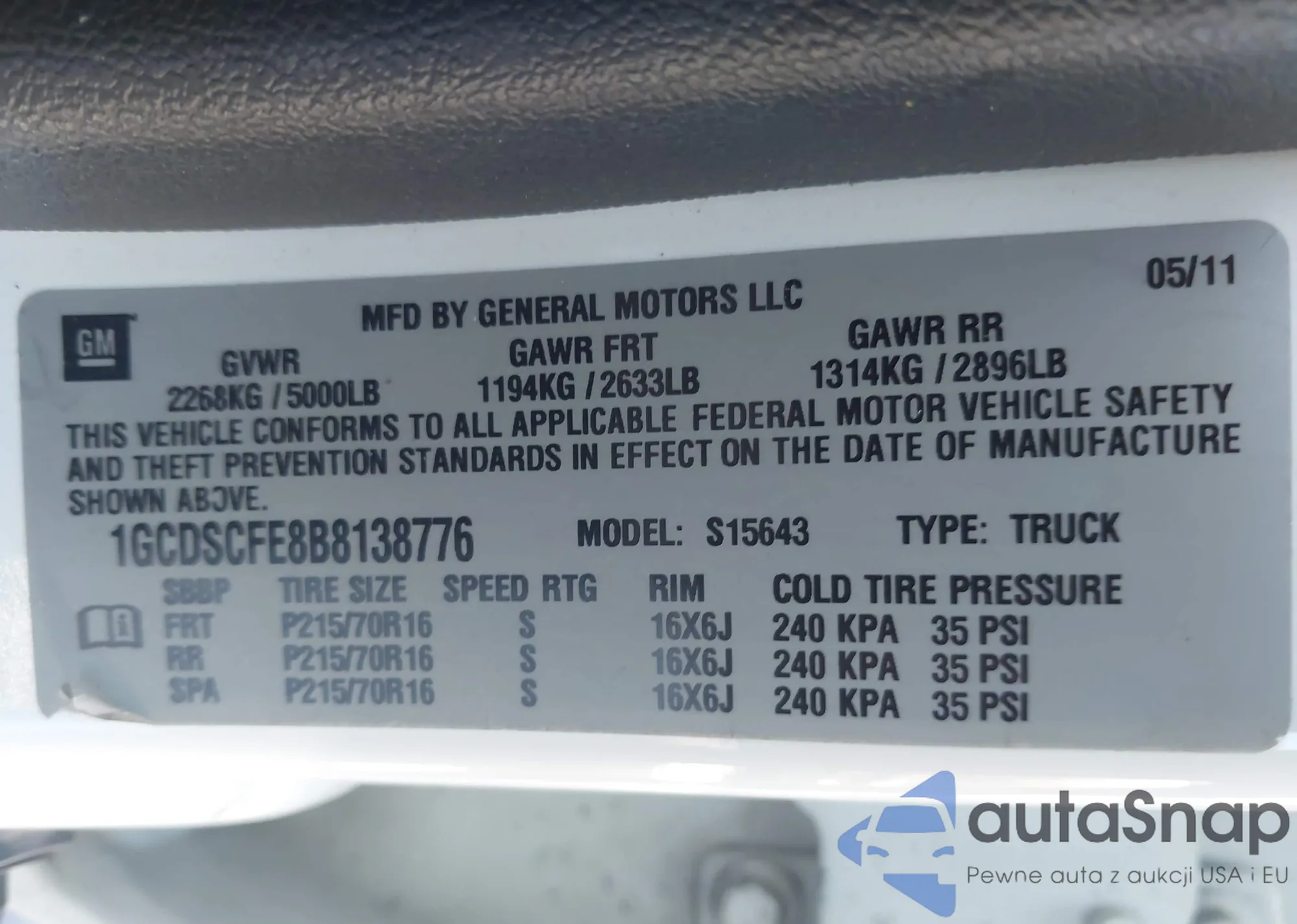 VIN: 1GCDSCFE8B8138776