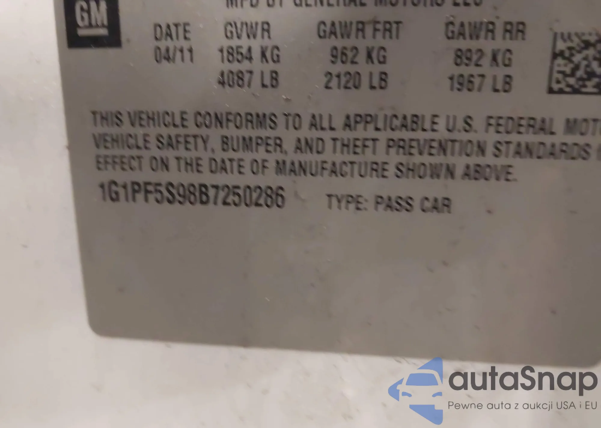 VIN: 1G1PF5S98B7250286