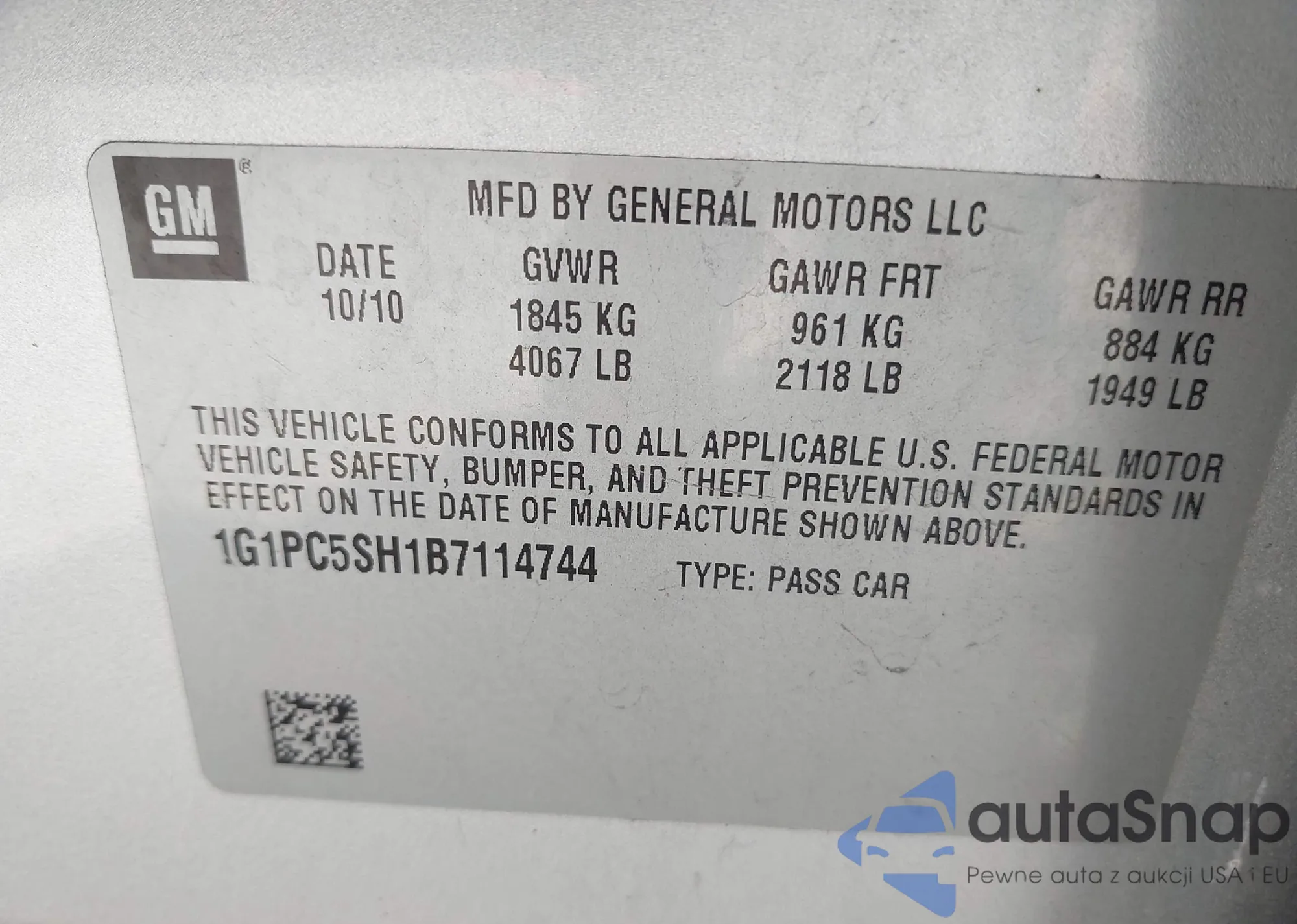 VIN: 1G1PC5SH1B7114744