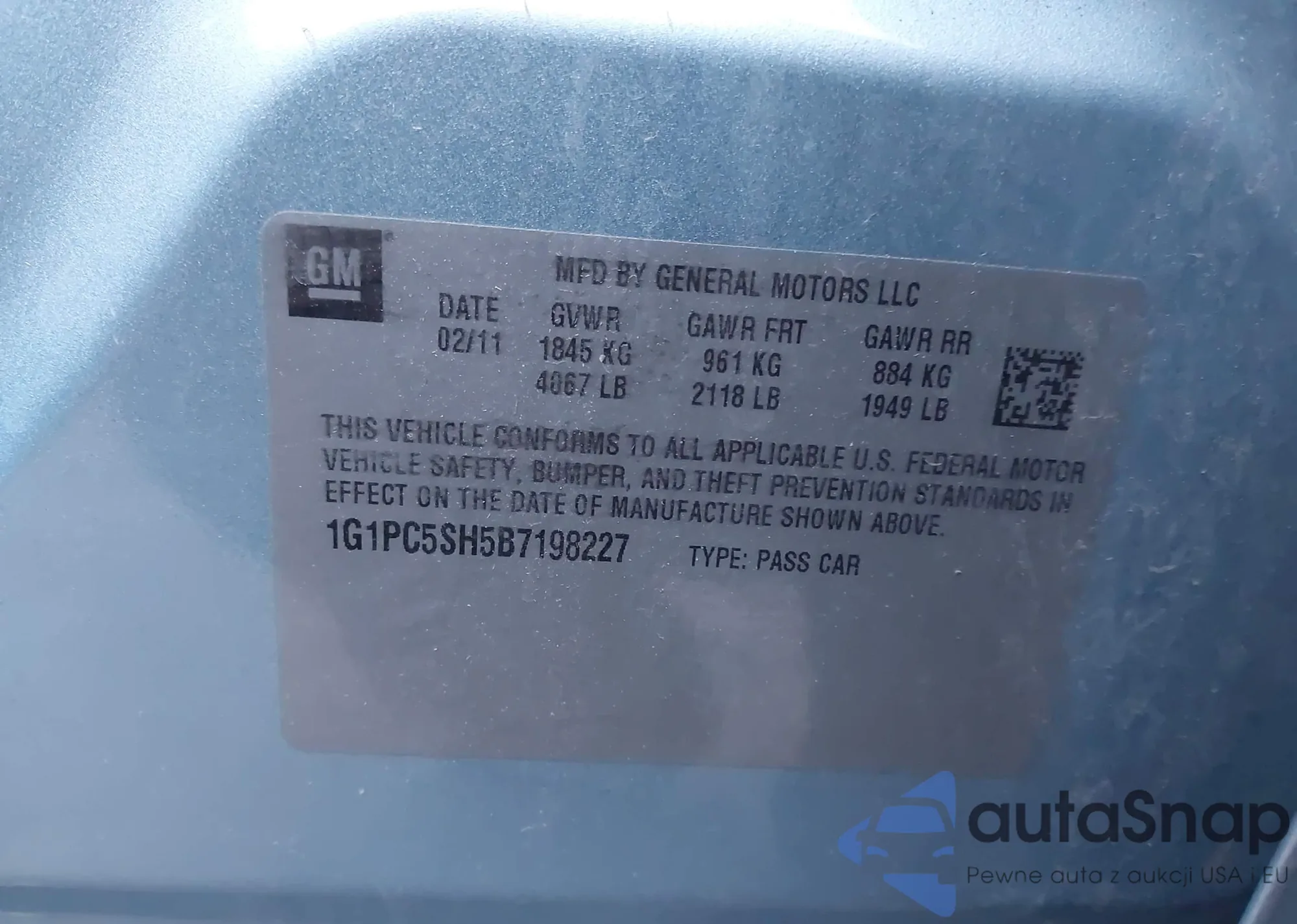 The car Chevrolet Cruze 2011 (VIN 1G1PC5SH5B7198227) has not been auctioned before. The documents are clean, and the mileage matches or is below the market average. Sold by an insurance company – we recommend purchase. Delivery to the port will take approx. 6–8 weeks.