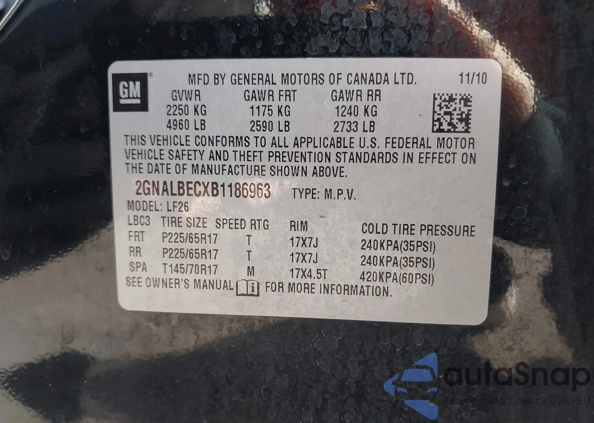 • VIN: 2GNALBECXB1186963