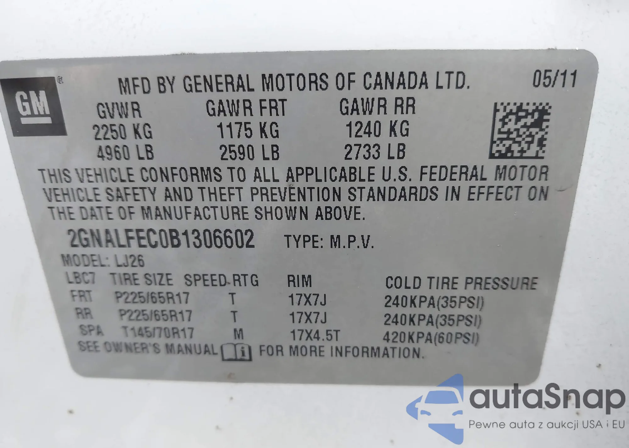 VIN: 2GNALFEC0B1306602