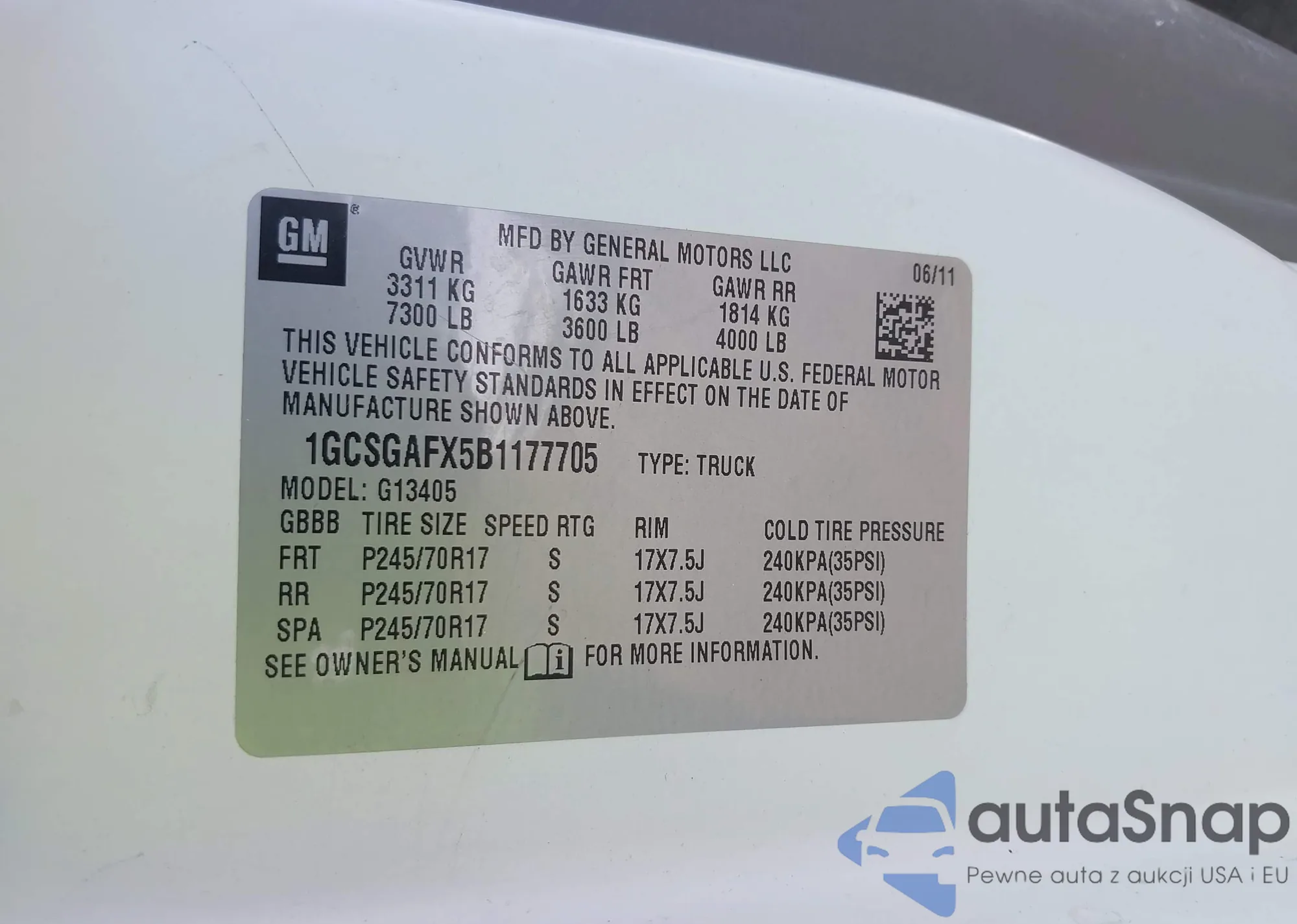 VIN: 1GCSGAFX5B1177705