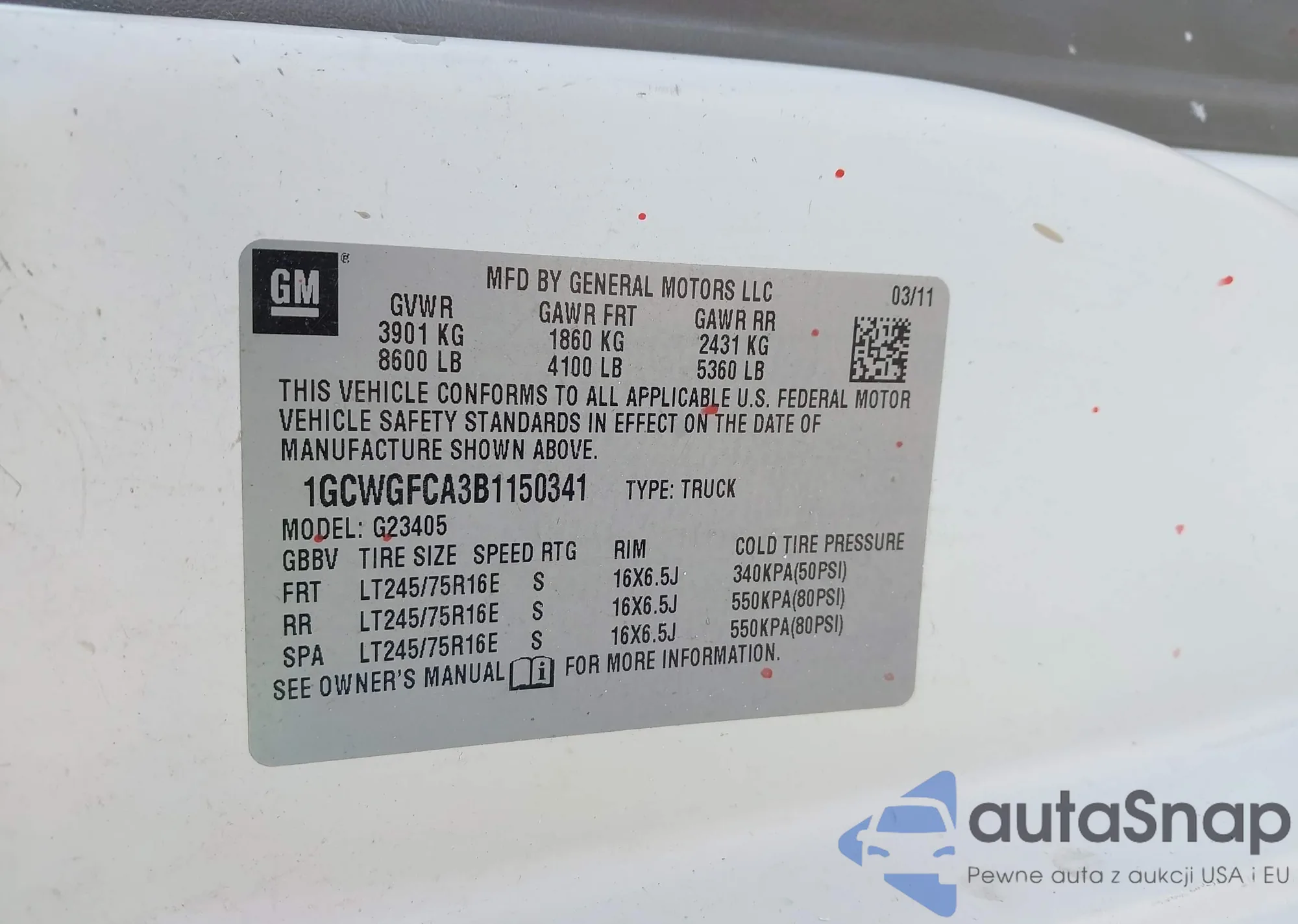 • VIN: 1GCWGFCA3B1150341