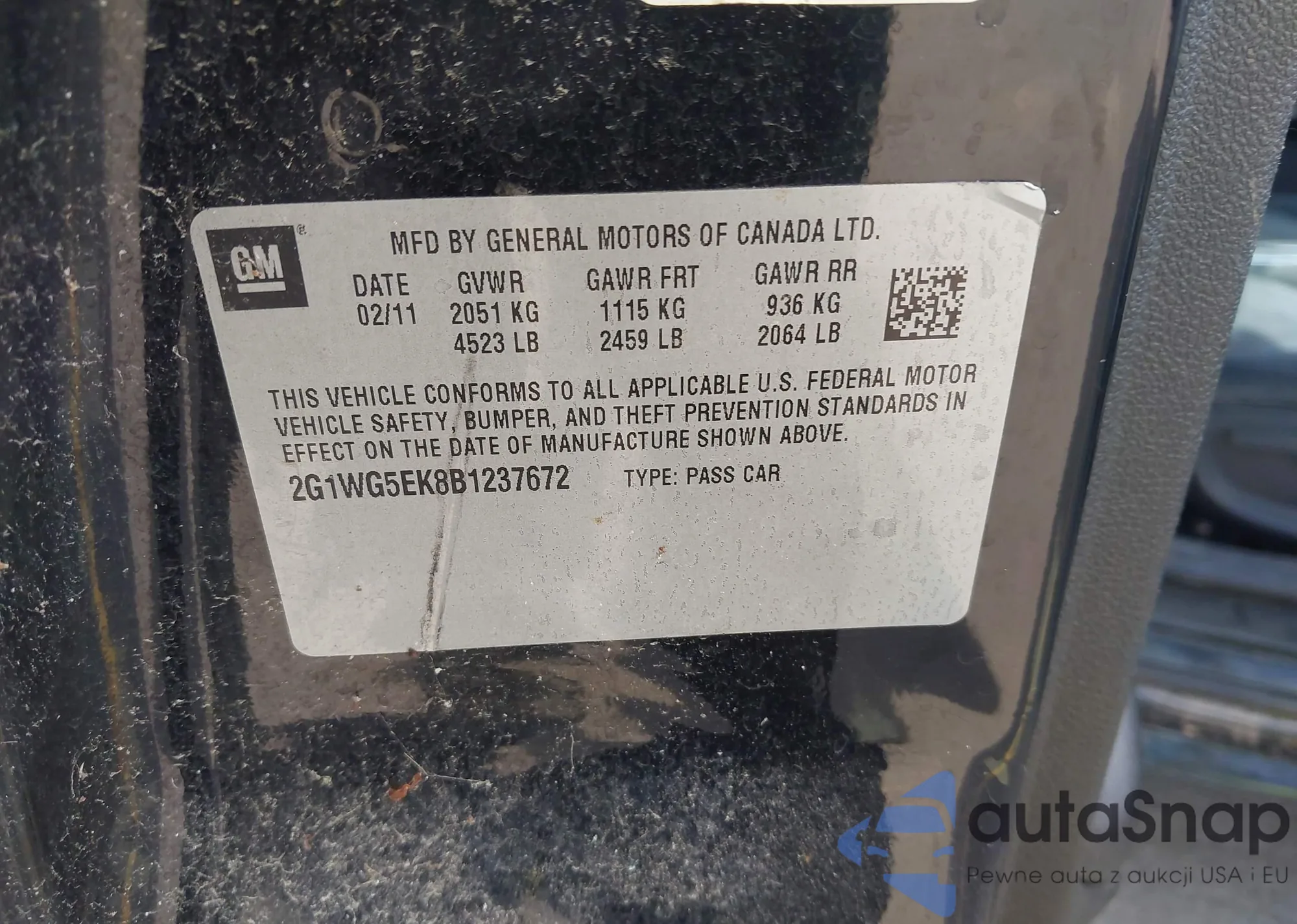 The car Chevrolet Impala 2011 (VIN 2G1WG5EK8B1237672) is sold by an unverified seller. We recommend checking the Carfax report and confirming registration possibilities before purchase.