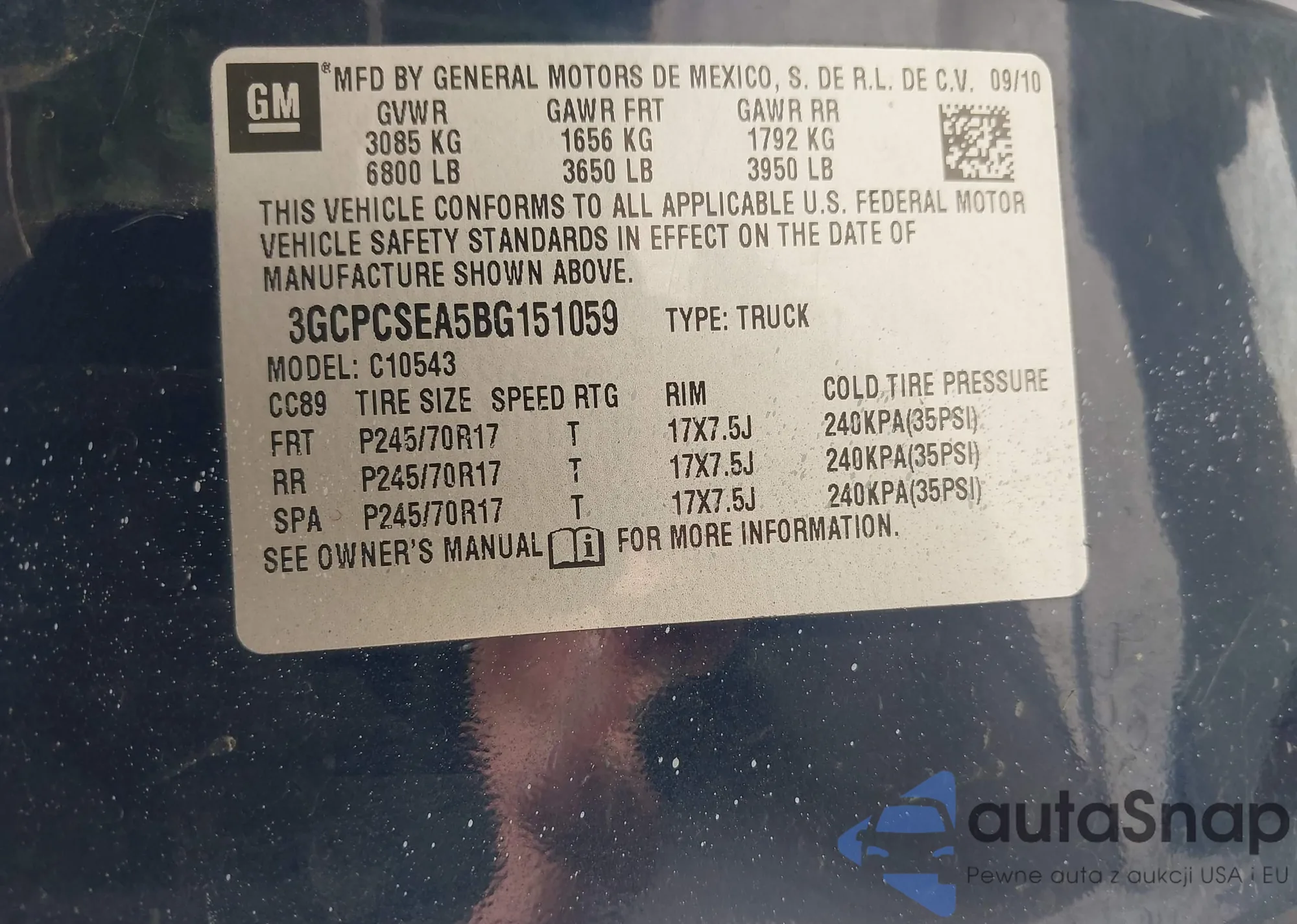 VIN: 3GCPCSEA5BG151059