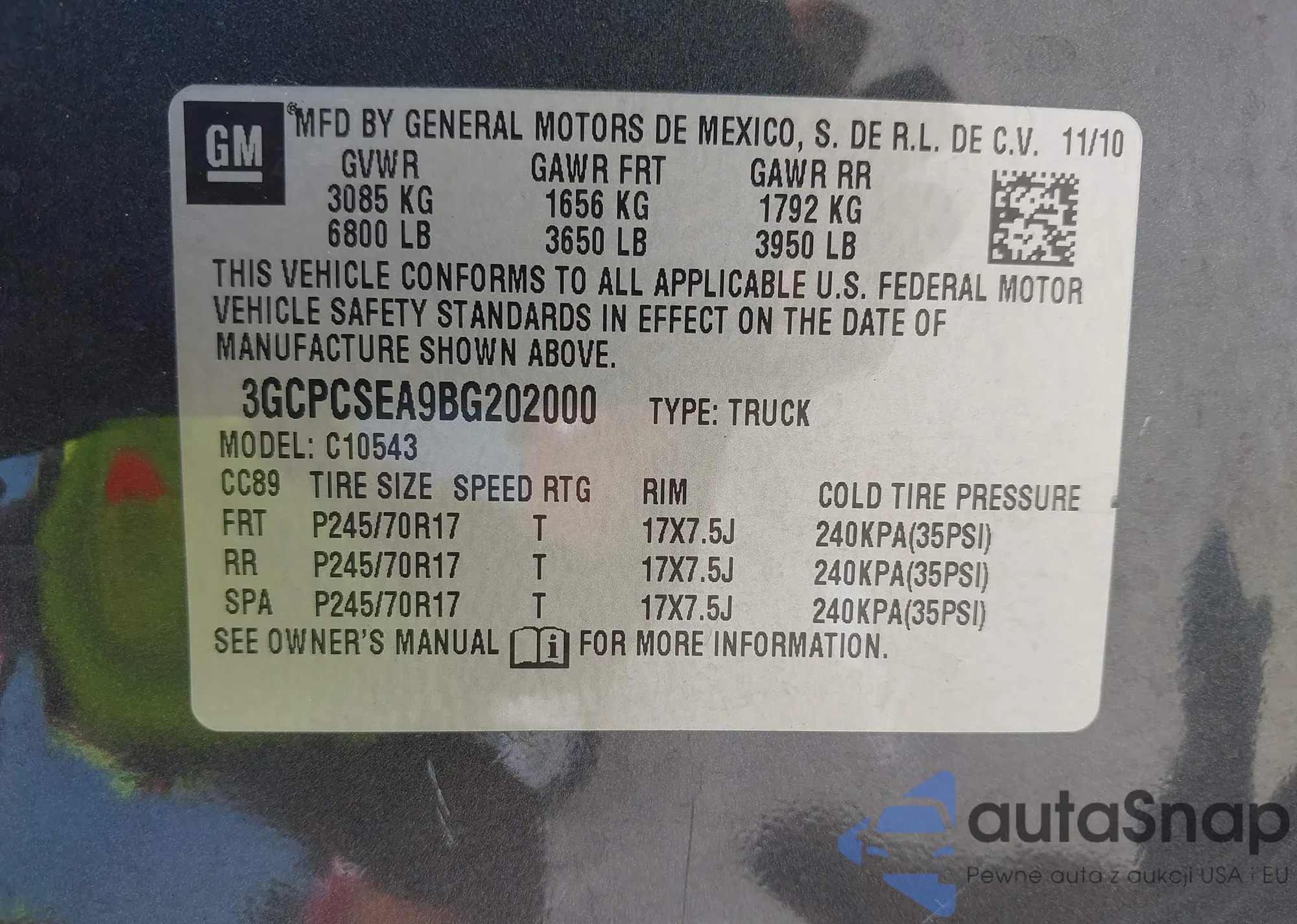 VIN: 3GCPCSEA9BG202000