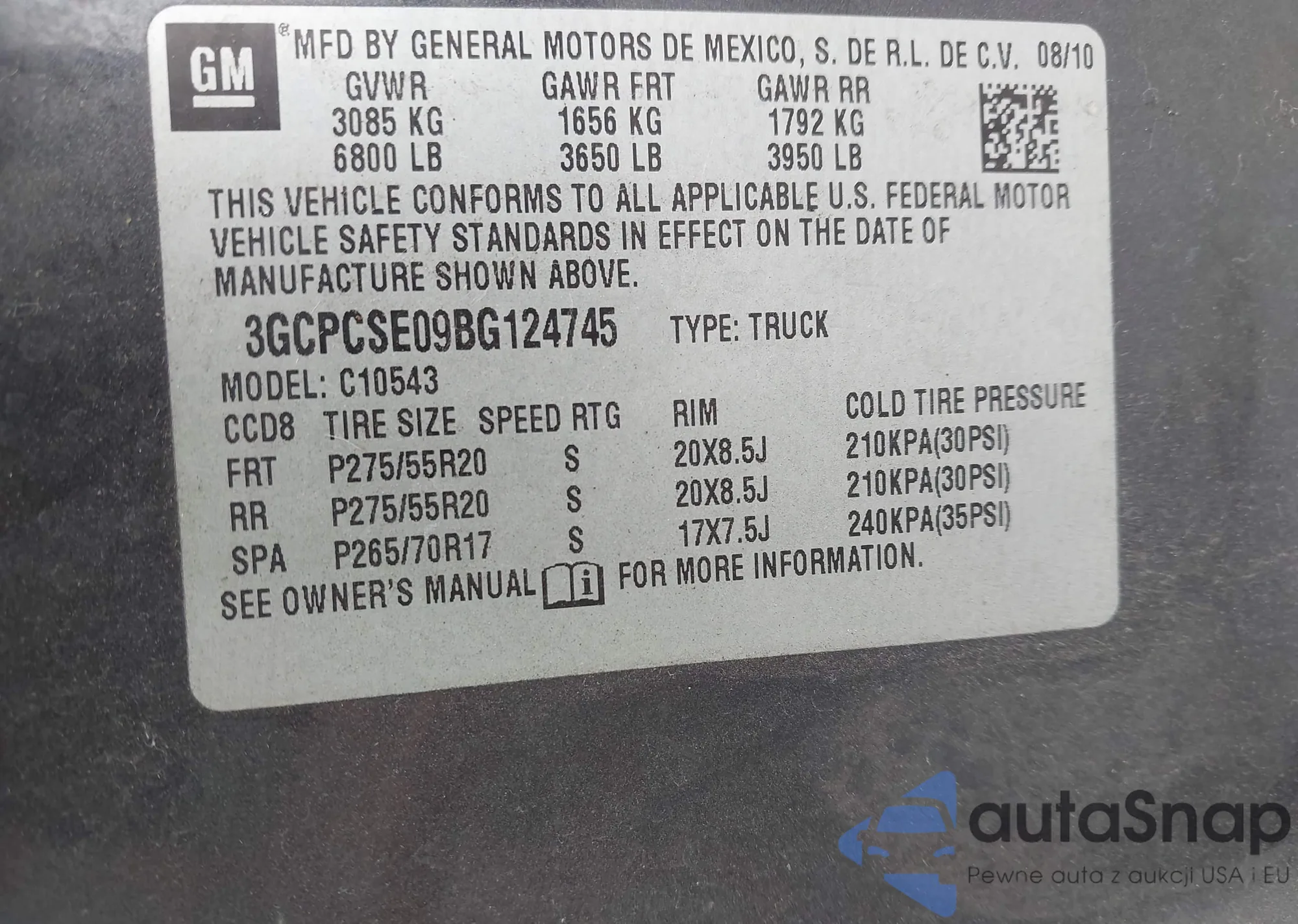 VIN: 3GCPCSE09BG124745