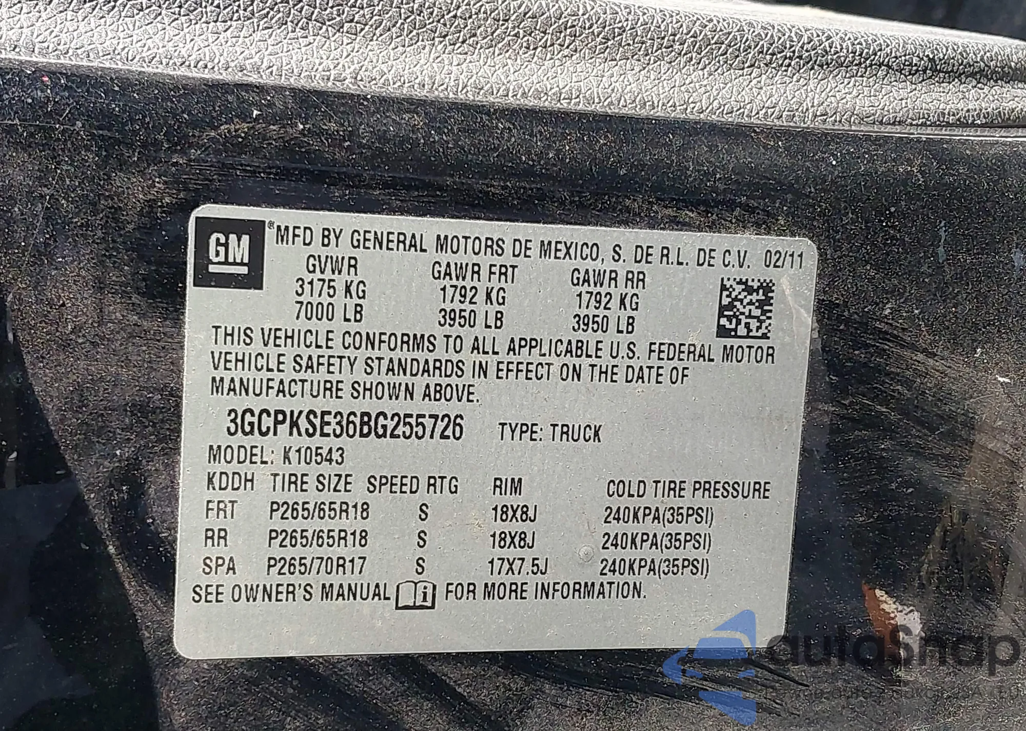 VIN: 3GCPKSE36BG255726